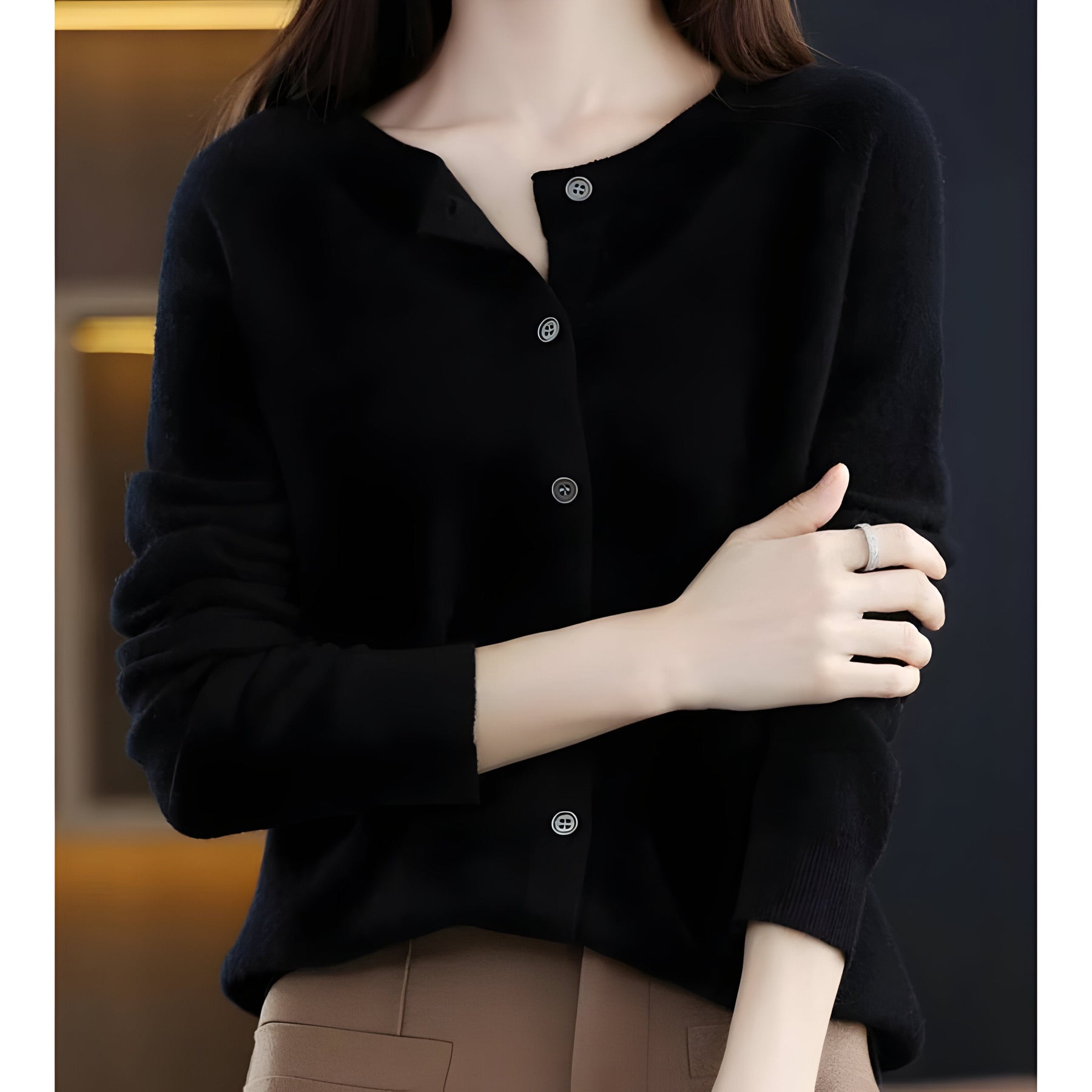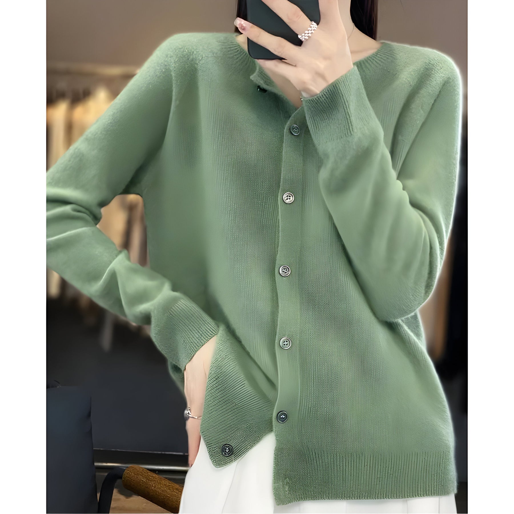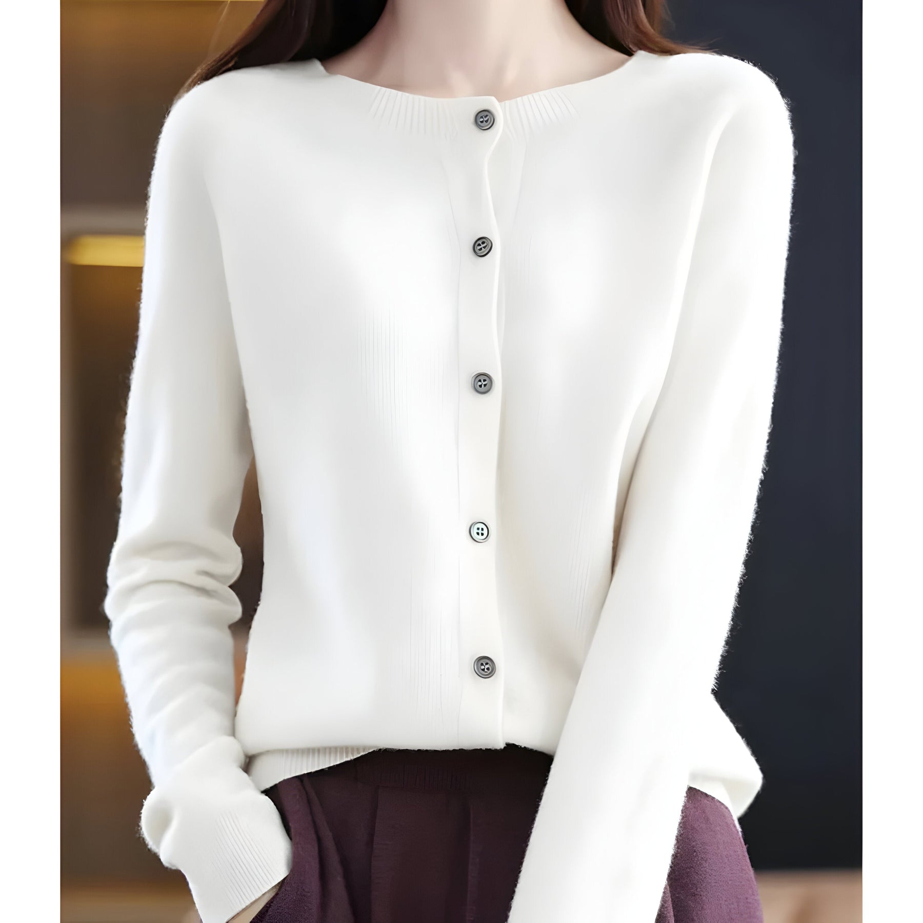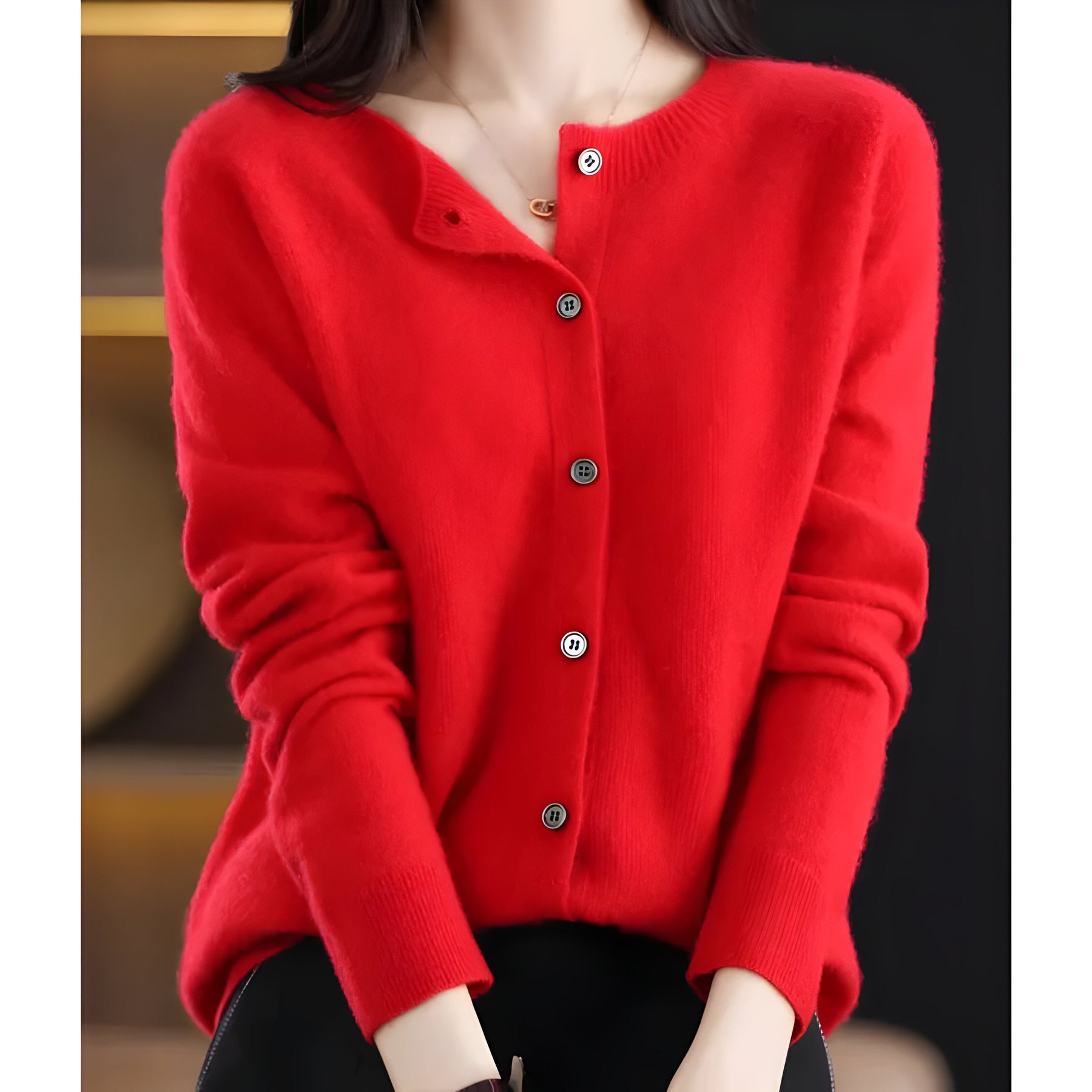 Eingehüllt in die luxuriöse Wärme dieses Pullovers. Der raffinierte V-Ausschnitt, die zarte Knopfleiste und das elegante Design sorgen dafür, dass du bei jeder Bewegung Eleganz ausstrahlst. Ob bei einem gemütlichen Abendessen oder einem Ausflug, dieses Stück vereint Komfort und Stil und hebt deine Wintergarderobe auf das nächste Level.