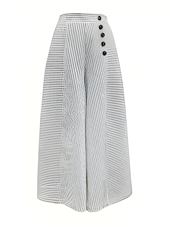 Spür den Sommer bei jedem Schritt mit dieser gestreiften, weit geschnittenen Hose, die deine Figur schmeichelt und dich gleichzeitig luftig und frei fühlen lässt. Der hohe Bund betont deine Taille, während der leichte Stoff angenehm auf der Haut liegt – ideal für sonnige Spaziergänge, entspannte Treffen oder gemütliche Tage zu Hause. Ein echtes Lieblingsstück für jeden Tag.