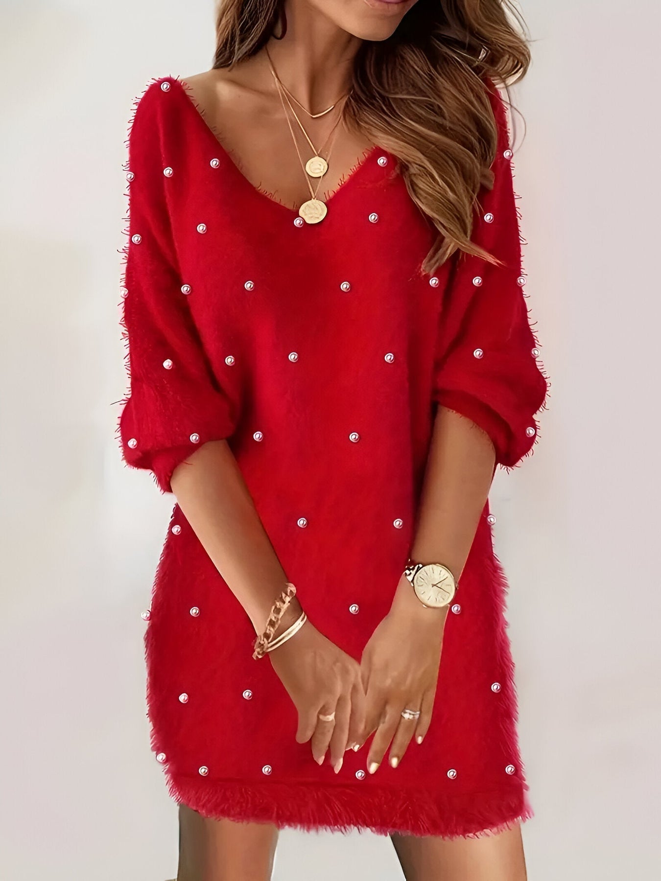 Das zeitlose V-Ausschnitt-Design und das leichte Material machen dieses Kleid das ganze Jahr über tragbar. Egal, ob es an kühleren Tagen mit einer Jacke kombiniert oder an wärmeren Tagen solo getragen wird – es ist ein absolutes Must-Have.