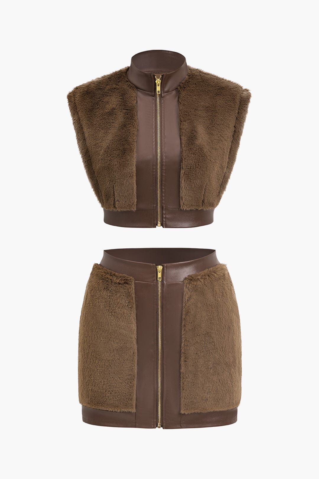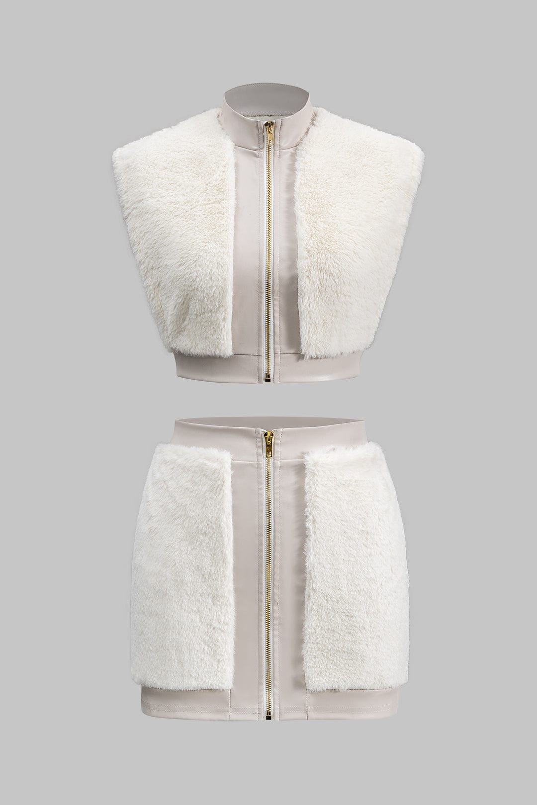 Das Antonia Kunstleder-Set vereint stilvolle Eleganz mit einem Hauch von Luxus. Das Set besteht aus einem ärmellosen Kunstleder-Top mit flauschigen Kunstpelz-Einsätzen und einem passenden Minirock mit Reißverschluss-Detail. Das hochwertige Material sorgt für eine perfekte Passform und unterstreicht die Figur. Ob für besondere Anlässe oder ein trendiges Streetstyle-Statement – dieses Set ist ein absoluter Hingucker.