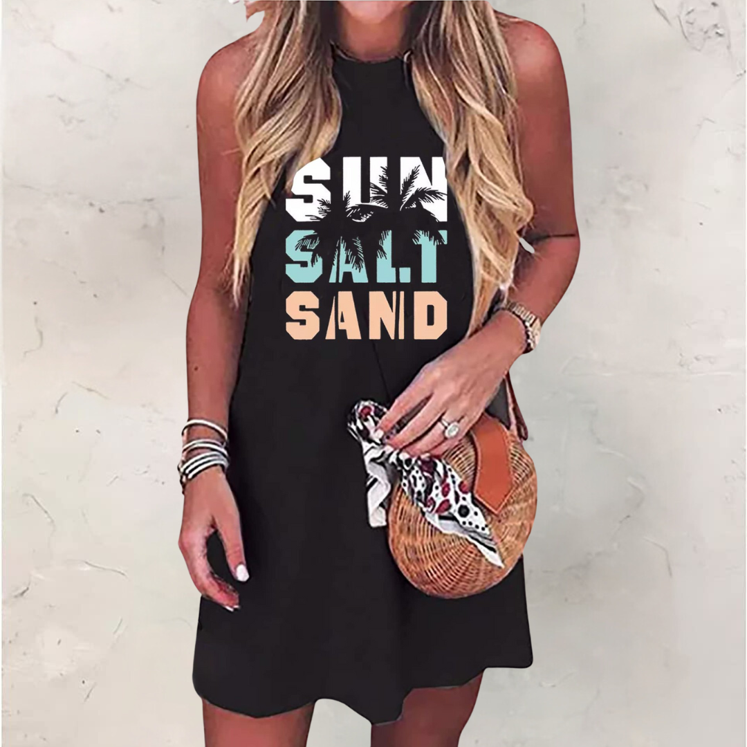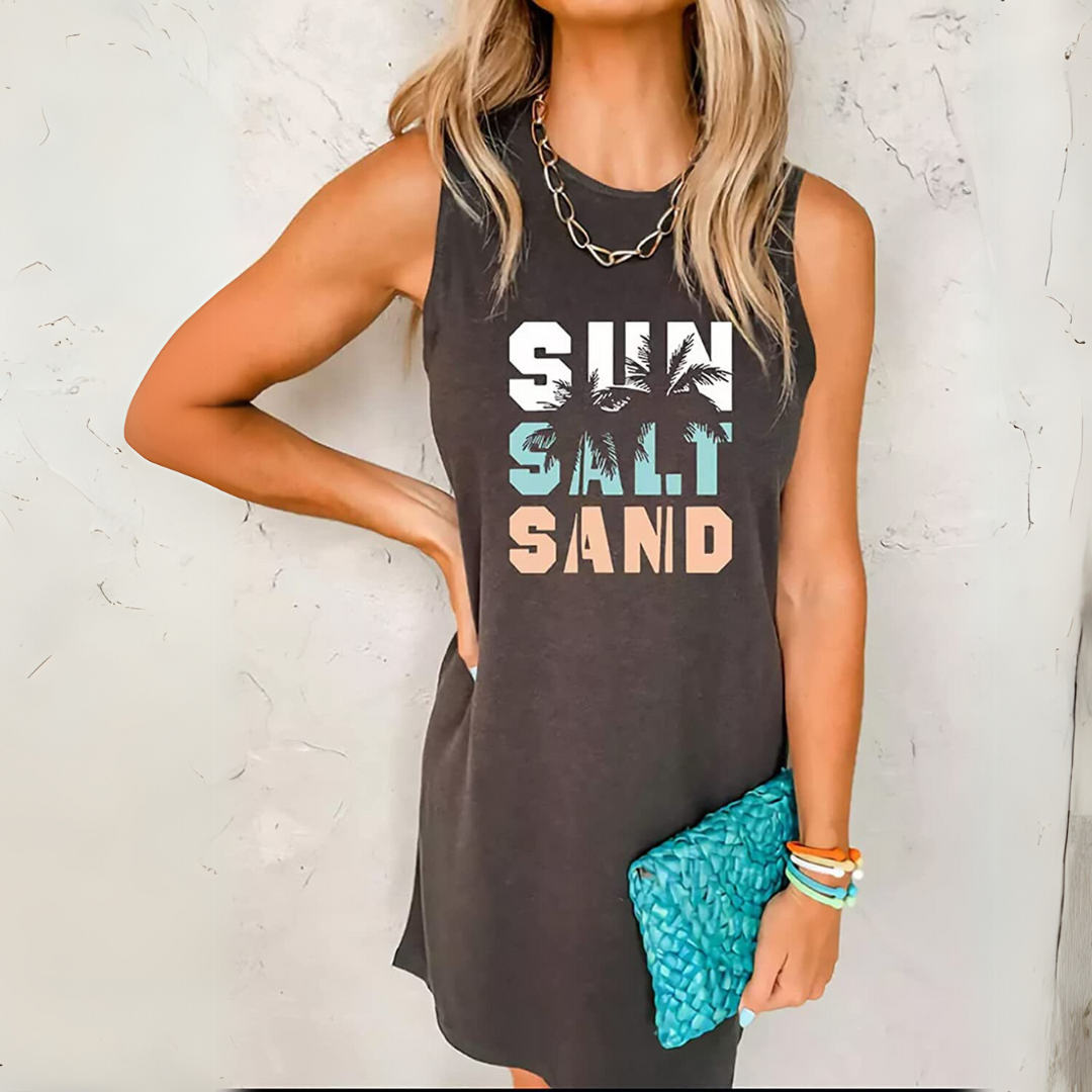 Dieses ärmellose Tankkleid zeichnet sich durch eine entspannte Silhouette und ein knielanges Design aus. Der auffällige Print verleiht eine lässige Note, während der ärmellose Schnitt Komfort bietet. Ein Taillenband rundet das Design stilvoll ab. Perfekt für warme Tage, verbindet es schlichte Linien mit praktischen Elementen.
