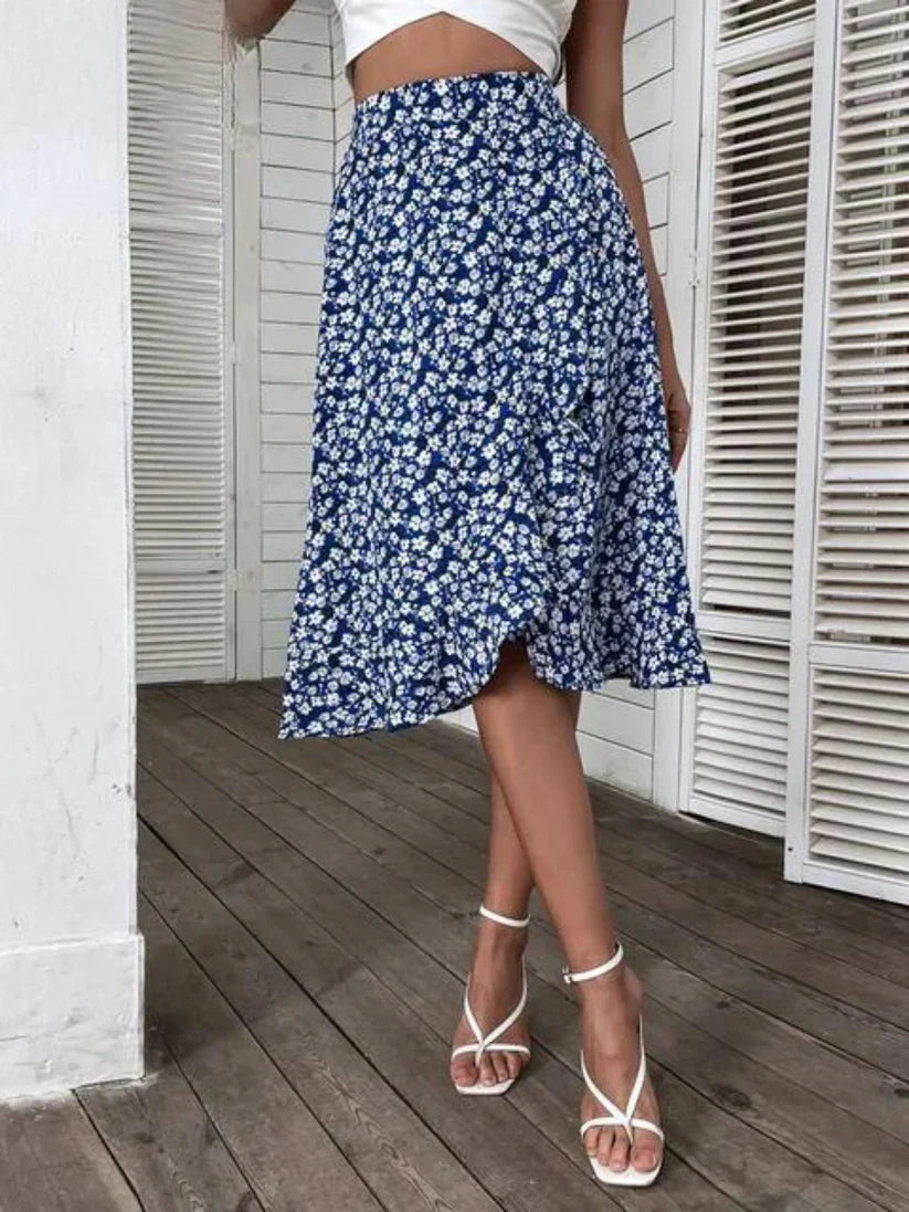 Beatrix | Midiröcke mit Blumendruck und Rüschenbesatz