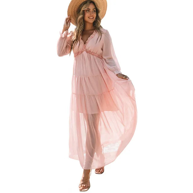 Bianca – Florales Maxikleid in Dunkelgrün, ein romantisches und ausdrucksstarkes Kleid mit zartem Blumenmuster. Der fließende Stoff und die elegante Farbgebung machen es perfekt für Gartenpartys, Sommerabende oder festliche Anlässe mit Stil.