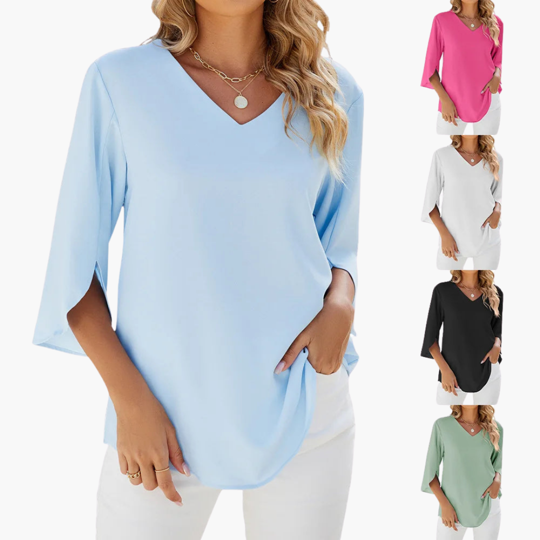 Luftiger V-Ausschnitt: Verleiht einen femininen Look und unterstreicht das Dekolleté