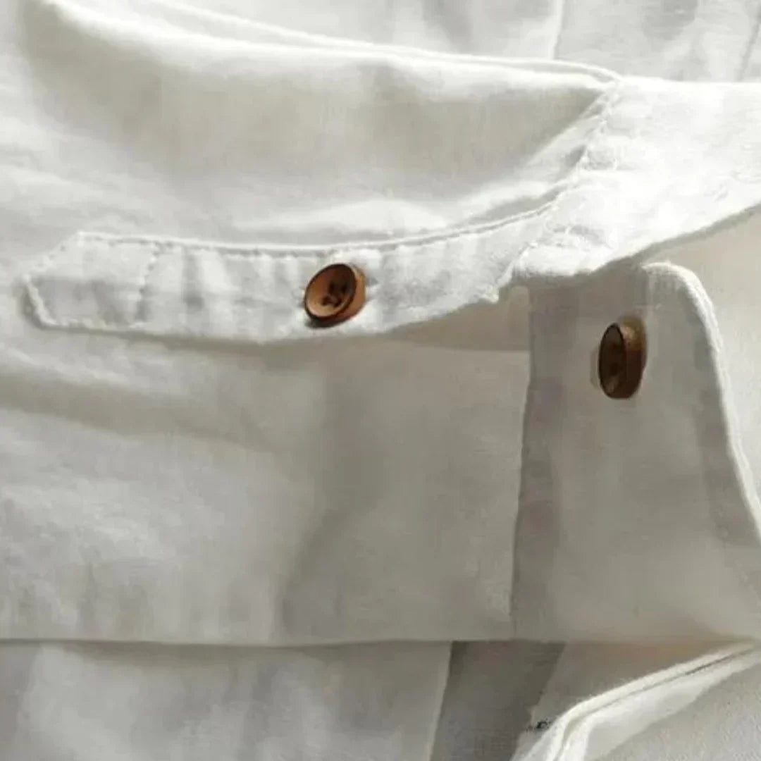 Das Hemd im japanischen Stil verkörpert eine minimalistische, modern-elegante und zeitlos ästhetische Garderobe. Gefertigt aus atmungsaktivem Leinen-Baumwoll-Gewebe, überzeugt dieses Hemd nicht nur durch seine attraktive Optik, sondern bietet auch höchsten Tragekomfort für alle, die Stil suchen, ohne Kompromisse bei der Bequemlichkeit einzugehen.