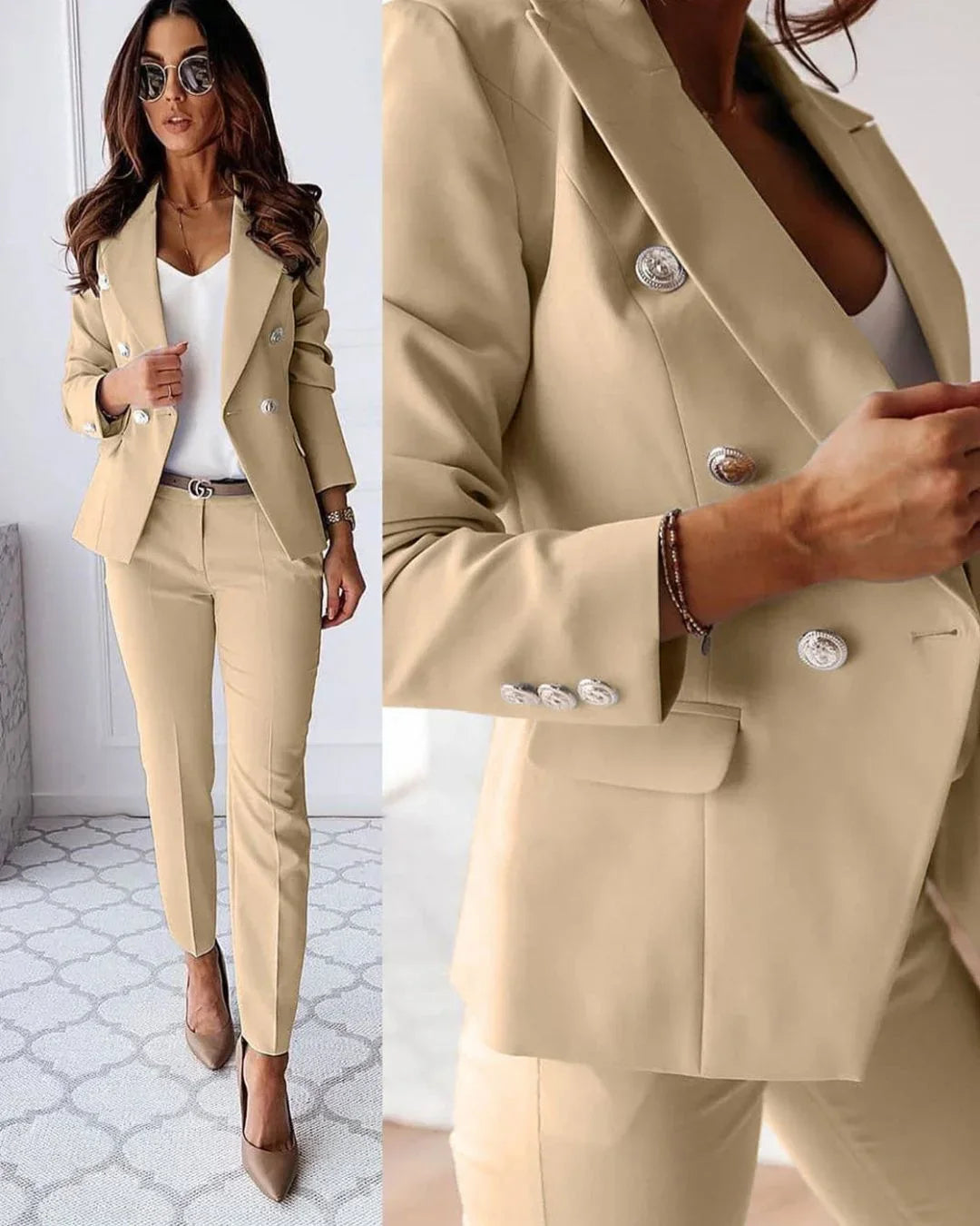 Erleben Sie die perfekte Mischung aus Eleganz und Funktionalität mit unserem Damenanzug. Konzipiert für die moderne Frau, bietet dieser Anzug eine Kombination aus klassischem Stil und zeitgemäßem Design, ideal für Büro und besondere Anlässe. Gemacht, um zu beeindrucken und gleichzeitig Komfort zu bieten, kennzeichnet er sich durch seine maßgeschneiderte Passform und das ansprechende doppelreihige Design.
