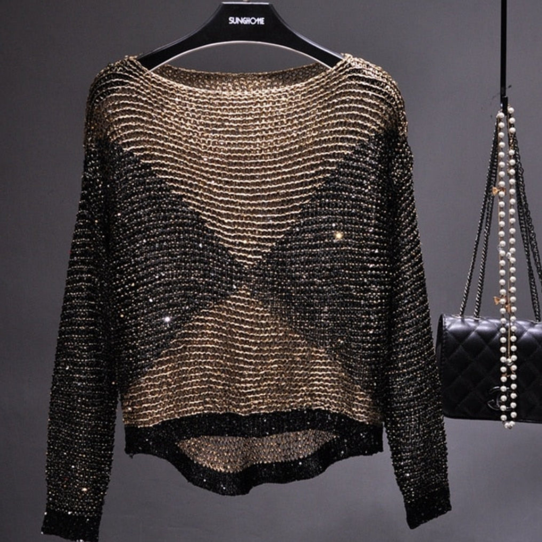 Dieses klassische Langarm-Oberteil mit Rundhalsausschnitt bringt einen Hauch von Glamour in deine Garderobe. Die funkelnden Pailletten verleihen dem zeitlosen Design eine stilvolle Note, perfekt für besondere Anlässe oder elegante Alltagslooks. Kombiniere es mühelos mit Jeans, Röcken oder Hosen für ein Outfit, das immer überzeugt.