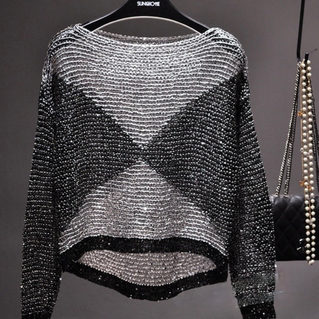 Damen Langarm Rundhals Klassisches Oberteil | Pailletten