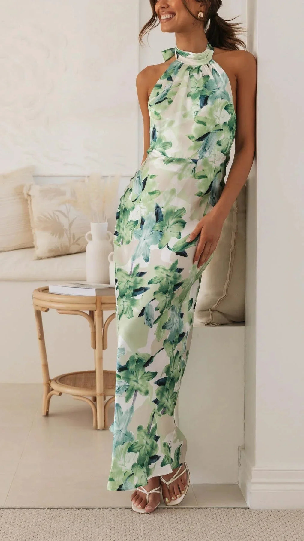 Damen Maxikleid mit Halsschleife und Blumenmuster