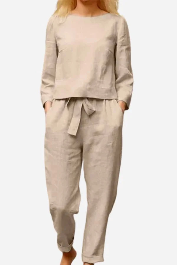 Entdecke entspannte Eleganz mit diesem Zweiteiler für Damen. Perfekt für lässige Tage oder stilvolle Auftritte, bietet dieses Set Komfort und Zeitlosigkeit.