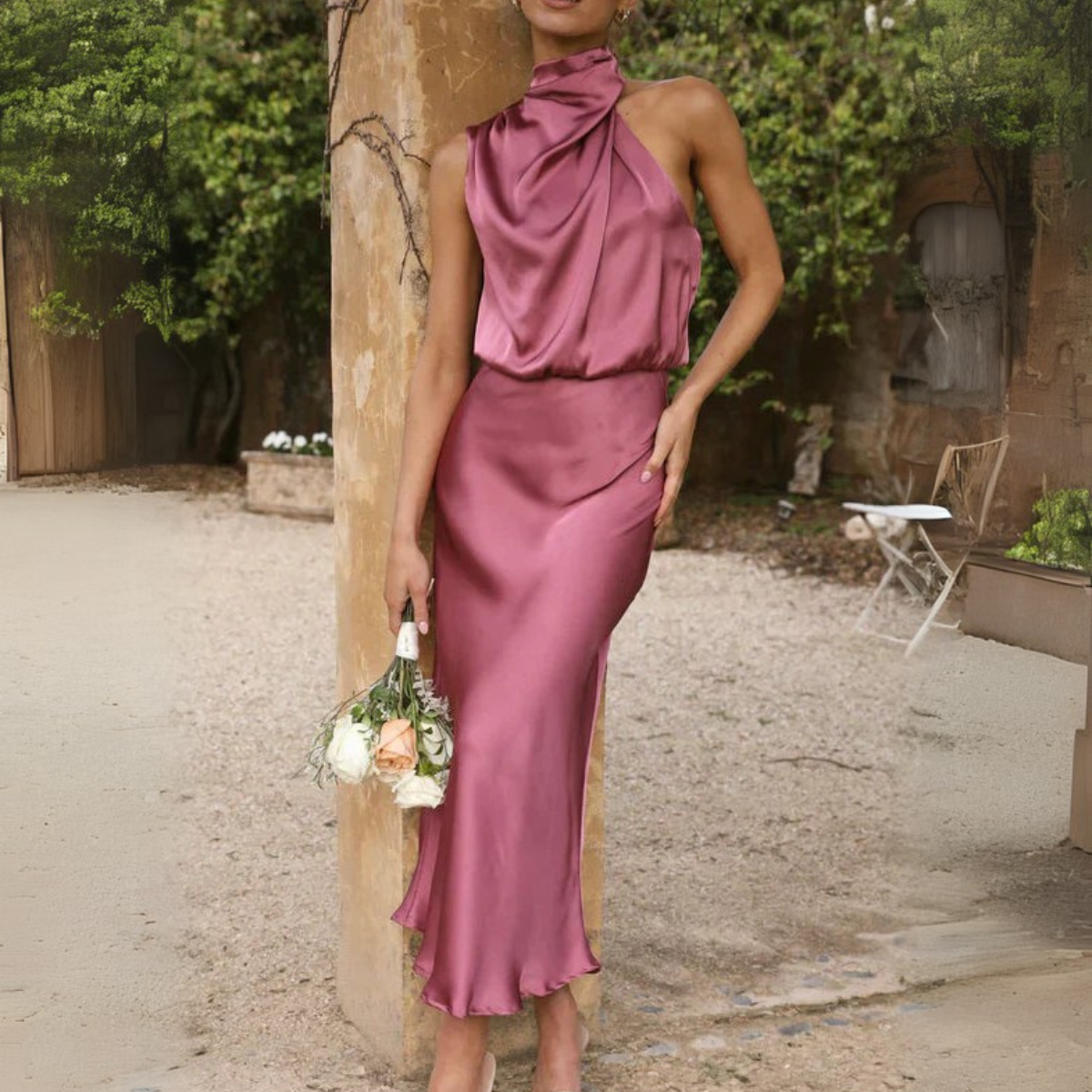 Warum dieses drapierte Neckholder-Midikleid wählen?