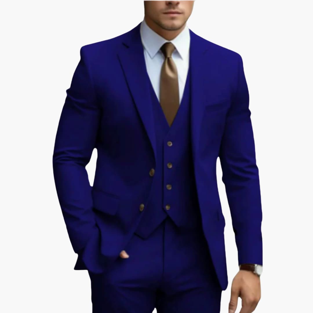 Setze bei Hochzeiten und festlichen Anlässen ein modisches Statement mit diesem eleganten 3-teiligen Anzug. Speziell für den modernen Gentleman entworfen, vereint er klassische Raffinesse mit einem zeitgemäßen Schnitt. Das Ergebnis ist ein Anzug, der Komfort und Stil auf höchstem Niveau verbindet – für einen Auftritt, der in Erinnerung bleibt.