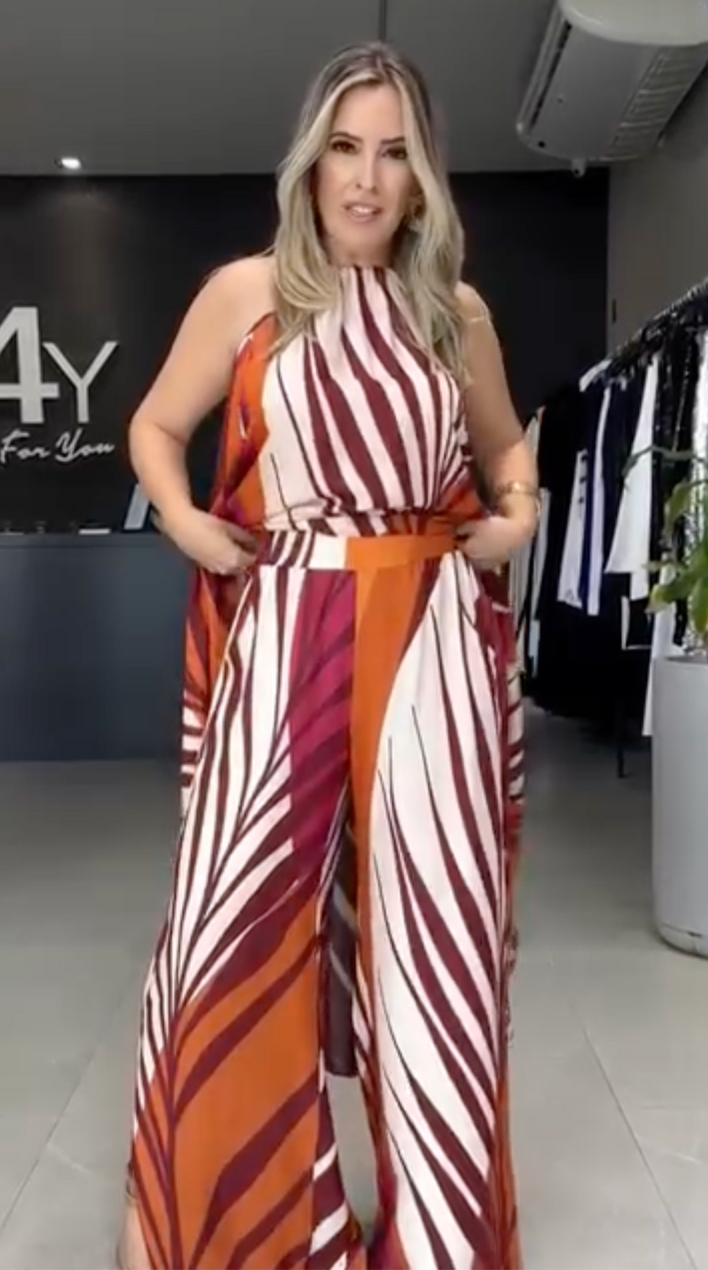 Das Edina™ – Set mit einzigartigem Druck ist die perfekte Wahl für alle, die einen chicen und entspannten Look zu jedem Anlass wünschen. Es besteht aus einem lockeren High-Low-Top und weiten Hose mit elastischem Bund, das Set bietet eine weite und bequeme Passform, ohne auf Stil zu verzichten. Der einzigartige Druck verleiht eine Note von Originalität, während der Halterkragen und das High-Low-Design einen fließenden und eleganten Look erzeugen. Ideal für Urlaub, lässige Ausflüge oder für alle, die sich mit entspannter, aber eleganter Mode abheben möchten.