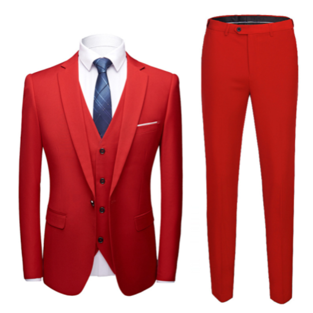 Dieses einreihige dreiteilige Set ist die perfekte Wahl für Hochzeiten und elegante Anlässe und bietet die perfekte Gleichgewicht aus Klasse und Komfort. Jedes Detail ist maßgeschneidert und zeugt von schlichter Eleganz in Reinkultur. Es stärkt Ihr Selbstvertrauen und sorgt dafür, dass Sie vom ersten Toast bis zum letzten Tanz perfekt aussehen.