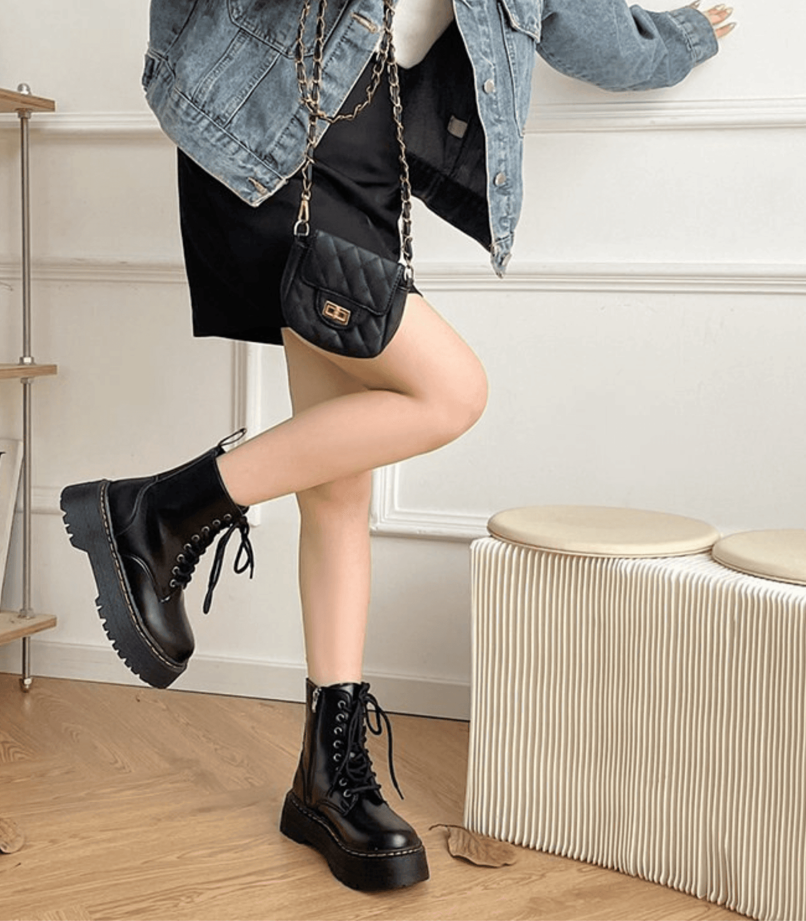 Die Eline Plateau-Stiefel aus echtem Leder vereinen urbanen Street-Style mit maximalem Komfort. Mit ihrer klobigen Sohle, robusten Schnürdetails und dem hochwertigen Leder-Finish sind diese Boots die perfekte Wahl für alle, die ein starkes Fashion-Statement setzen möchten. Ob für Streetwear, Grunge-Looks oder lässige Alltags-Outfits – diese Stiefel sind ein absolutes Must-have!