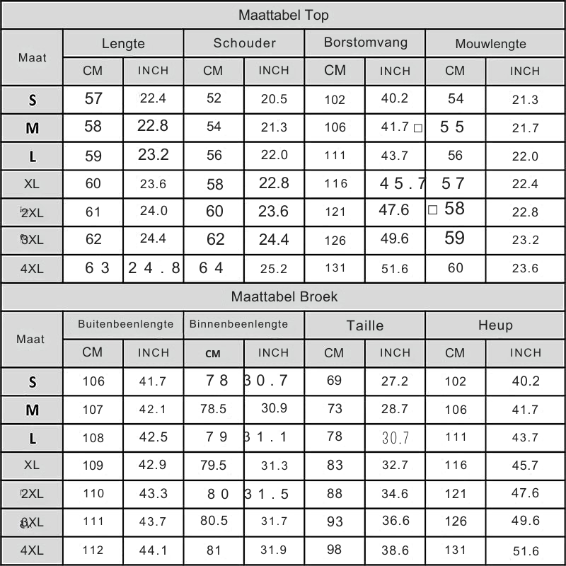 | 2XL | 106-111 | 91-96 | 114-119 |