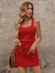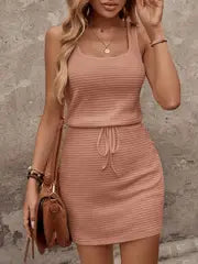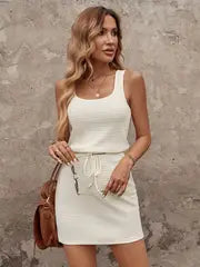 Evelyn - Elegantes ärmelloses Strickkleid mit Kordelzug und Rüschendetail