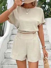 Einfach reinschlüpfen und gut aussehen – mit Hazel bist du sofort bereit für den Tag. Ob beim Stadtbummel, gemütlichen Frühstück oder beim Entspannen zu Hause: Dieses Set sorgt für ein frisches Gefühl und einen stilvollen Look, ohne Aufwand.