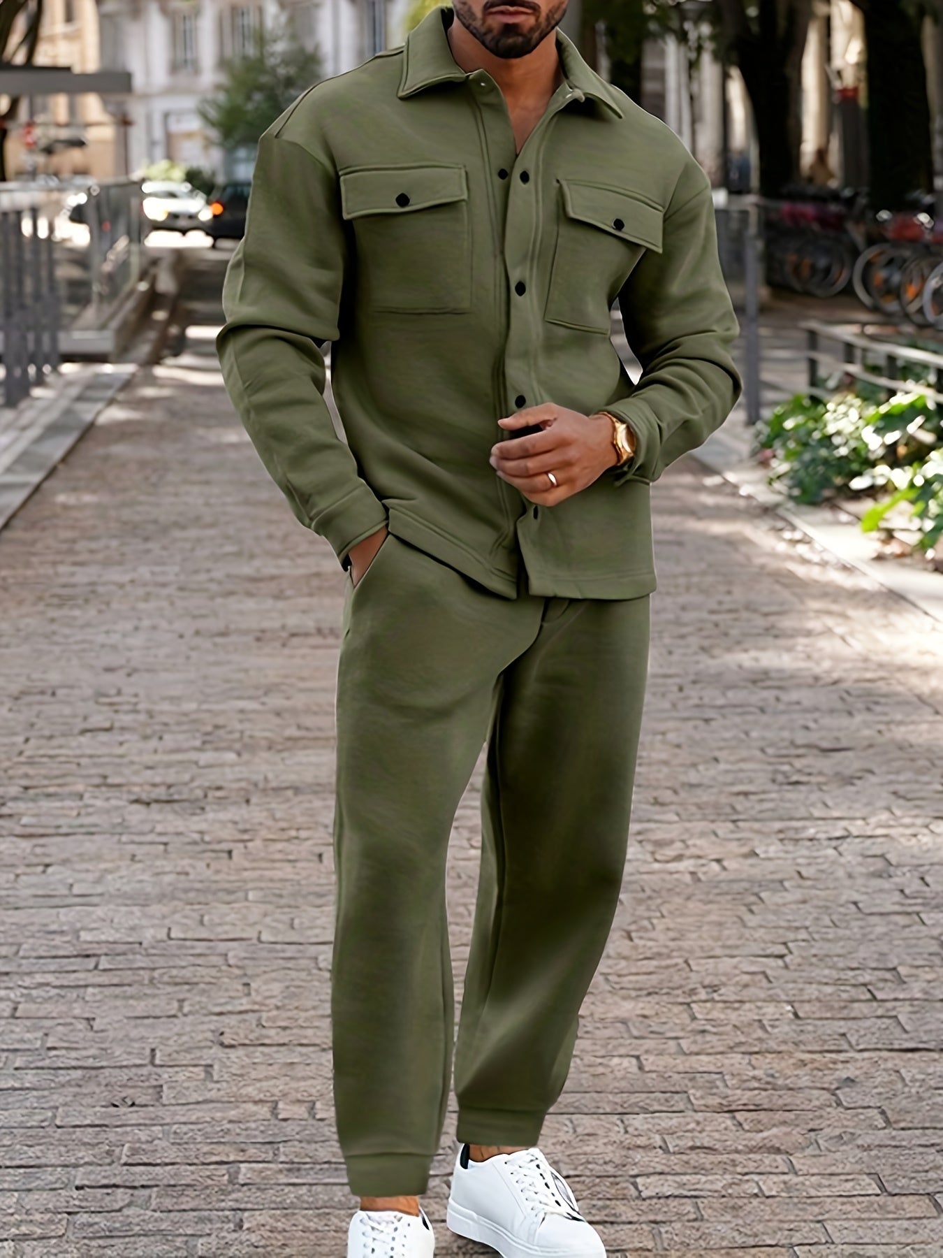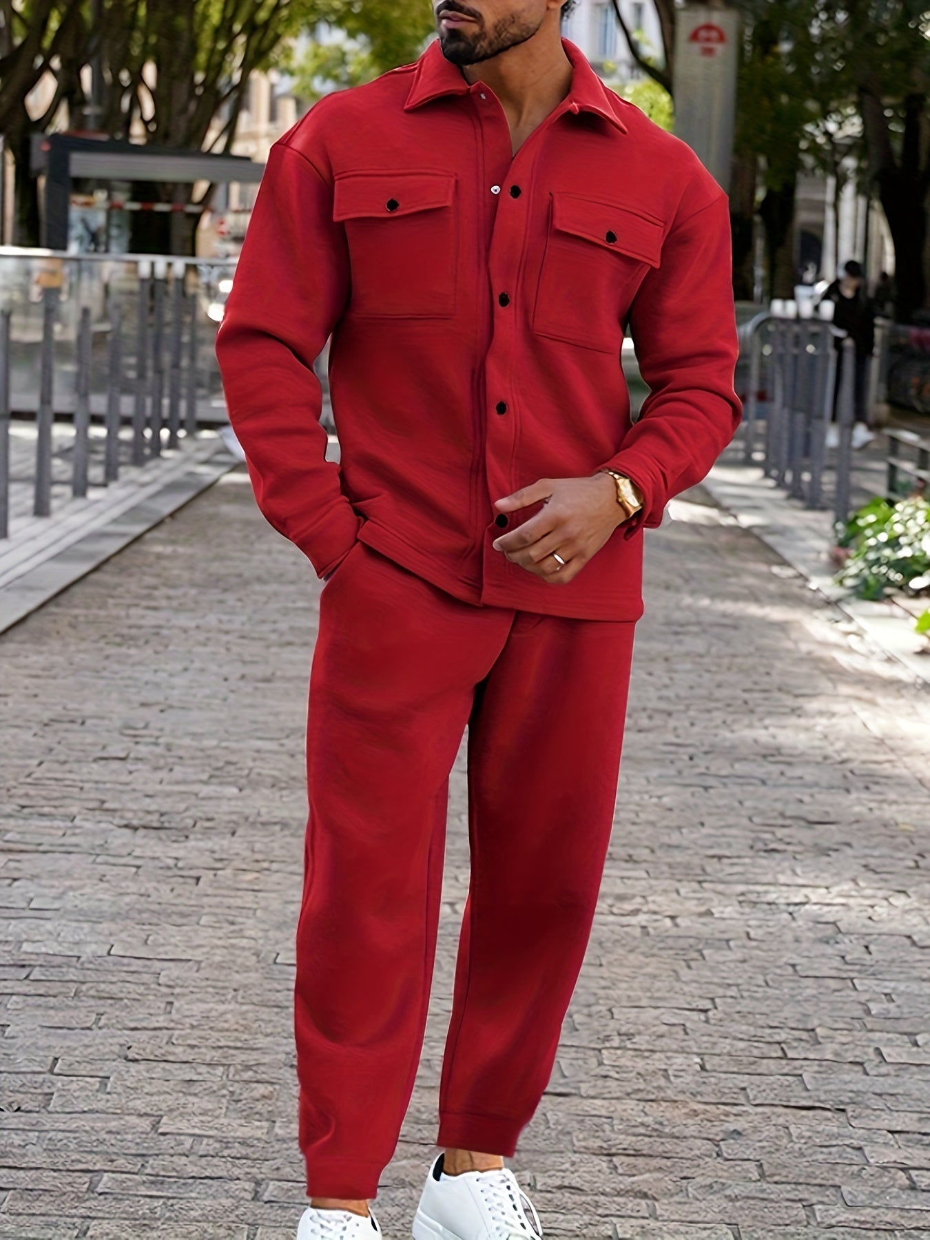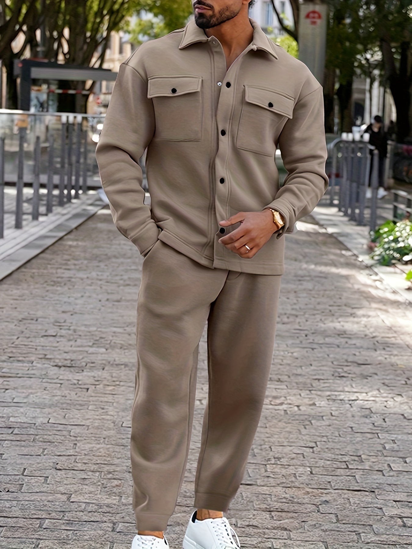 Dieser Jacken- und Hosen-Trainingsanzug vereint lässigen Komfort mit stilvollen Details. Die strukturierte Jacke und die entspannt geschnittene Hose schaffen eine harmonische Kombination aus Funktionalität und modernem Design. Perfekt für einen unkomplizierten, modischen Auftritt.