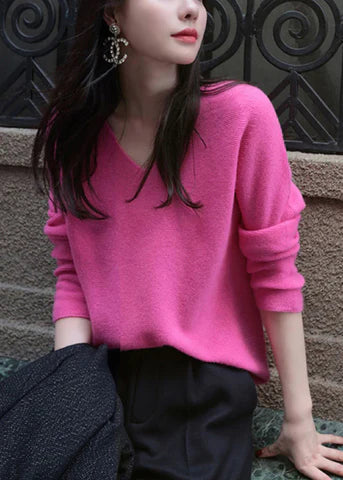 Jaemy ist ein italienisches Strickoberteil mit femininem V-Ausschnitt. Der weiche Stoff bietet Komfort und einen stilvollen Look. Perfekt für einen lässigen Look oder ein schickes Abendoutfit.