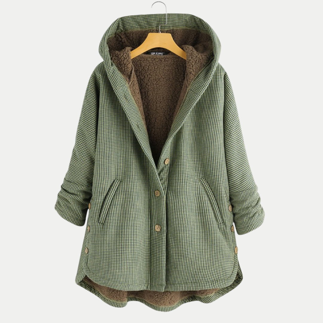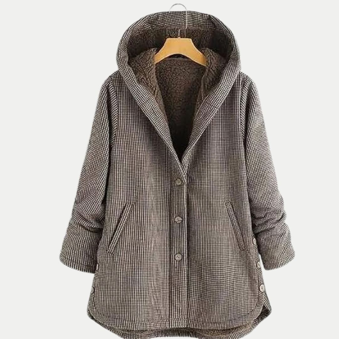 Karierter Mantel mit Kapuze für Damen