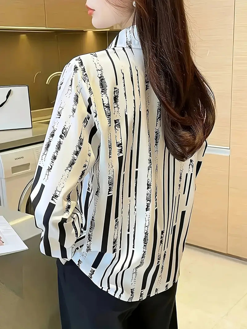 Die perfekte Mischung aus lässigem Komfort und schicker Raffinesse. Ob beim Kaffeetrinken oder bei einem entspannten Ausflug, diese Bluse verleiht deinem Look durch das zeitlose Streifenmuster und den weichen, atmungsaktiven Stoff mühelos einen besonderen Touch. Stell dir vor, du trägst sie mit Leichtigkeit in den Frühlings-, Sommer- und Herbstmonaten.