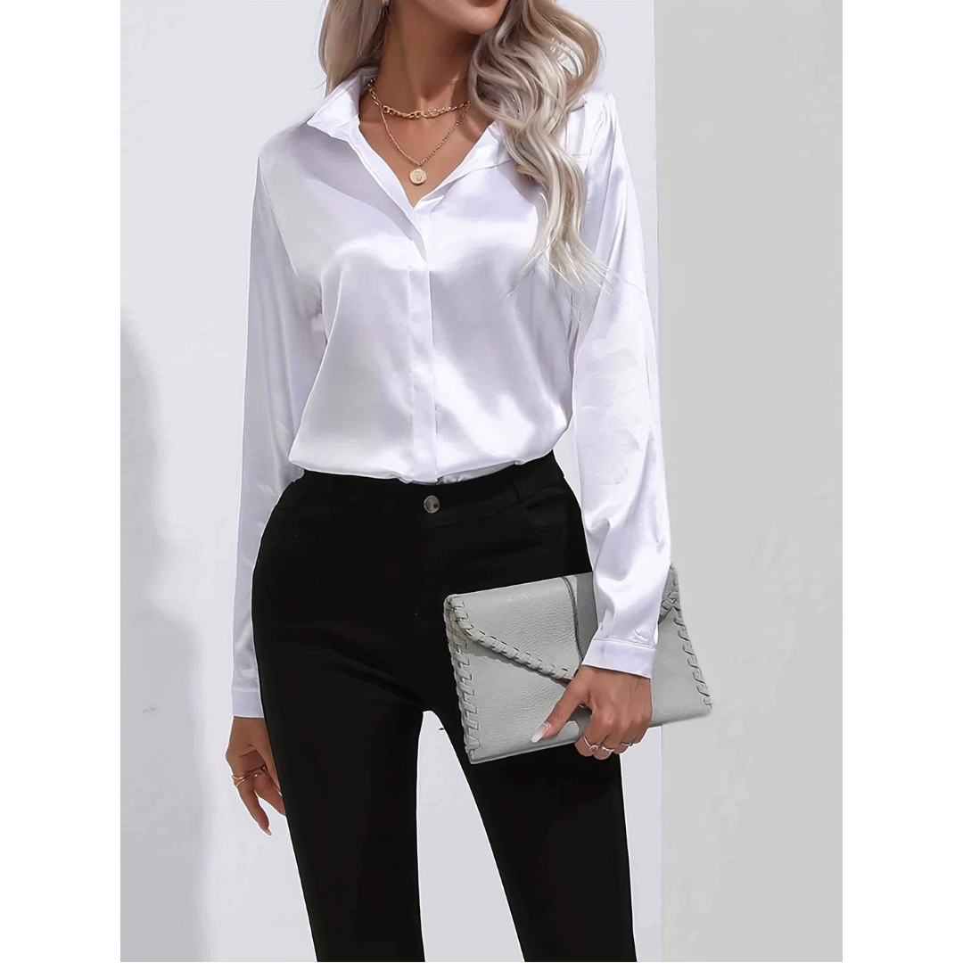 Dieses Hemd hat ein Kragen-Design mit langen Ärmeln. Es verfügt über eine durchgehende Knopfleiste und saubere Abschlüsse an den Manschetten und dem Saum. Die Vorder- und Rückseite sind schlicht und glatt, mit einem gepflegten, eleganten Erscheinungsbild.