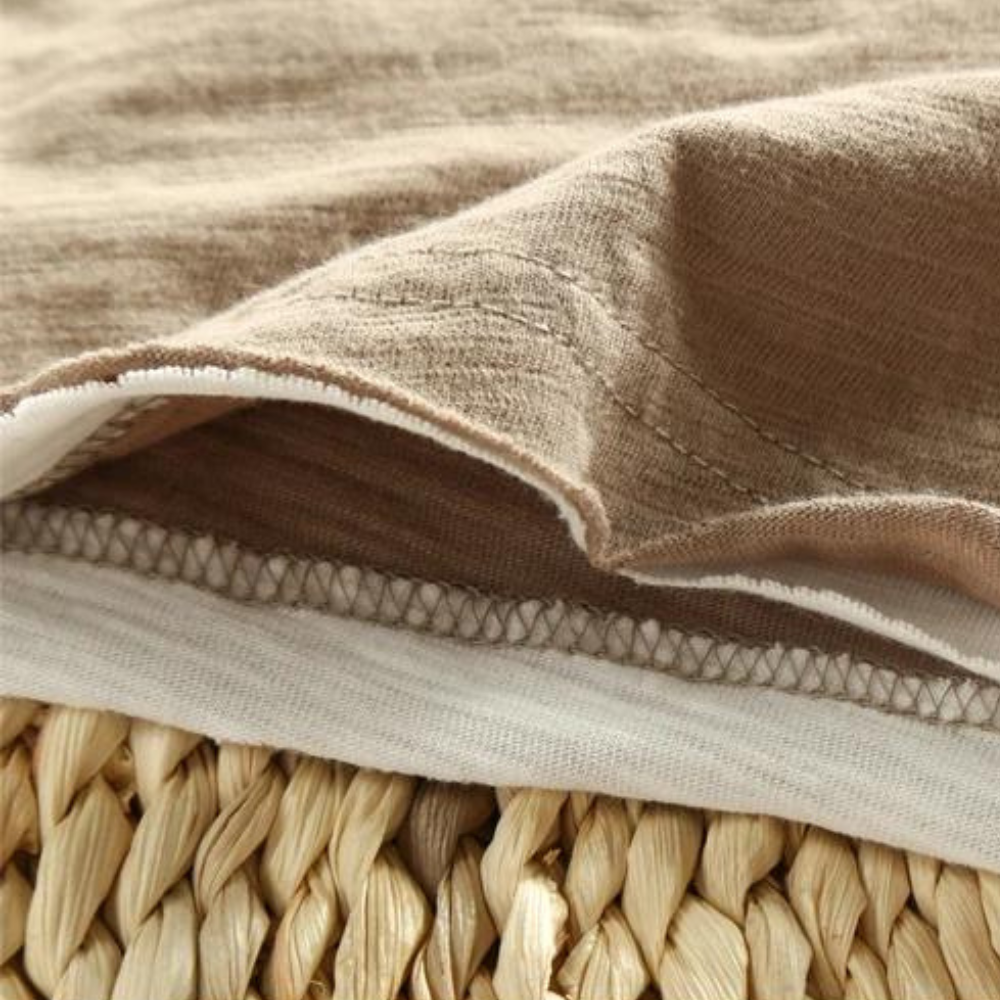Unsere Produkte sind aus hochwertigen Materialien wie Baumwolle, Seide und Leinen gefertigt. Um die Qualität und Langlebigkeit dieser edlen Stoffe zu bewahren, empfehlen wir, sie bei maximal 30 Grad in der Waschmaschine zu waschen. So bleibt Ihre Kleidung lange schön und fühlt sich immer angenehm auf der Haut an.