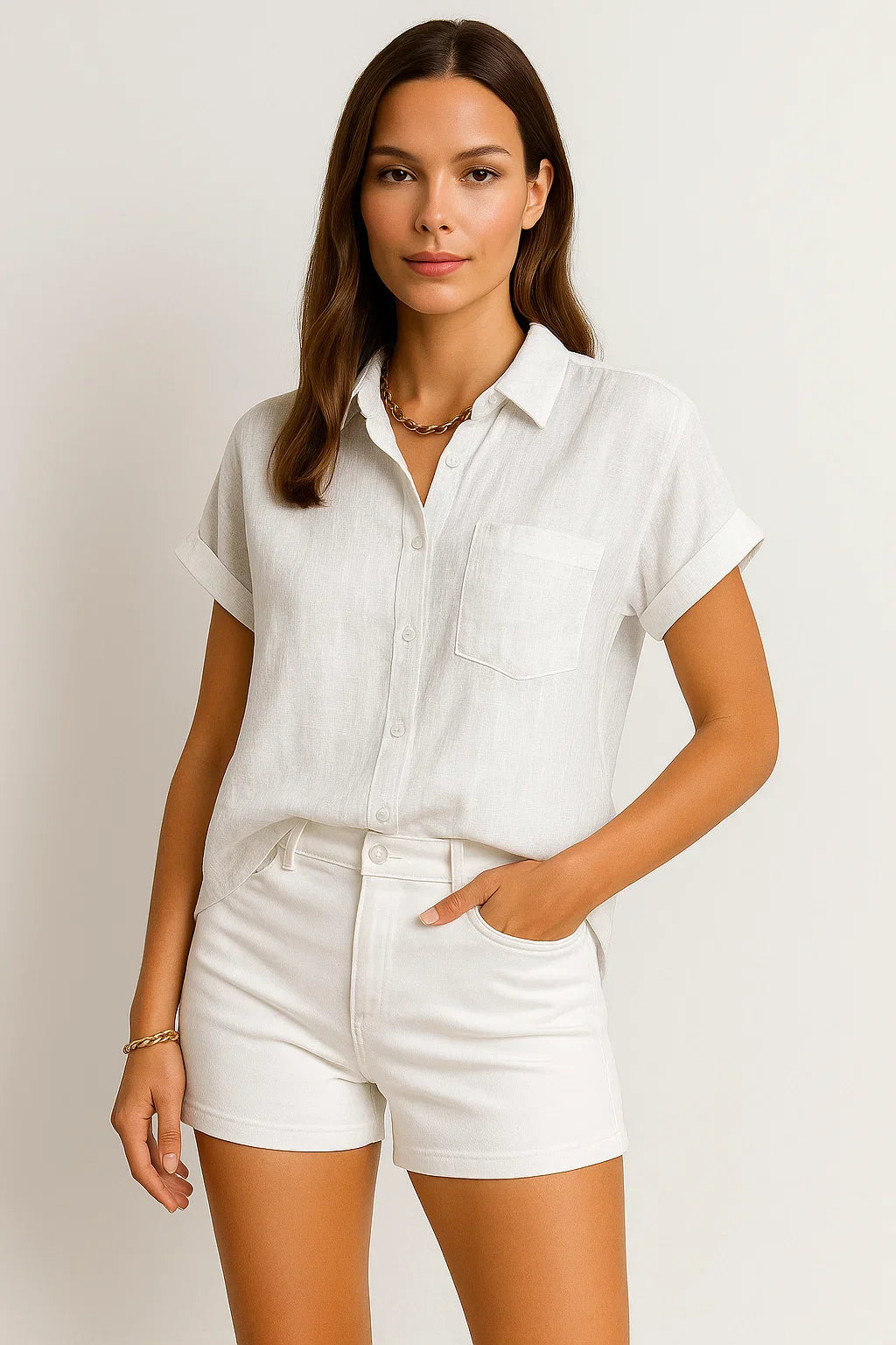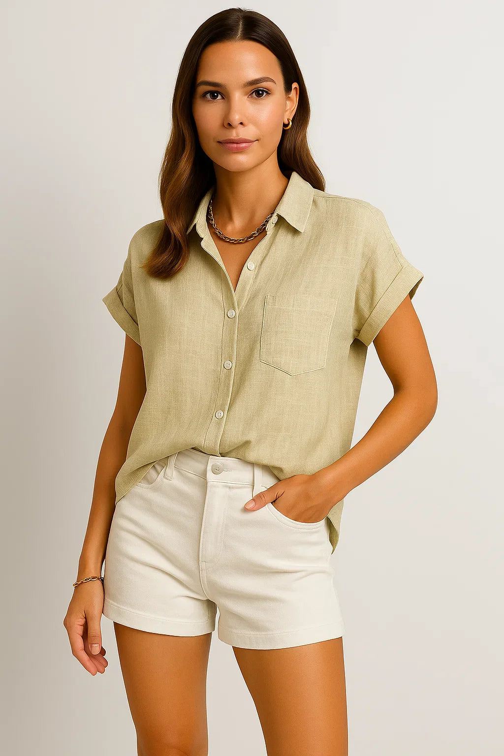 - Zeitloses Design: Die schlichte Optik mit kurzen Ärmeln macht diese Bluse zu einem stilvollen Begleiter für jede Jahreszeit.