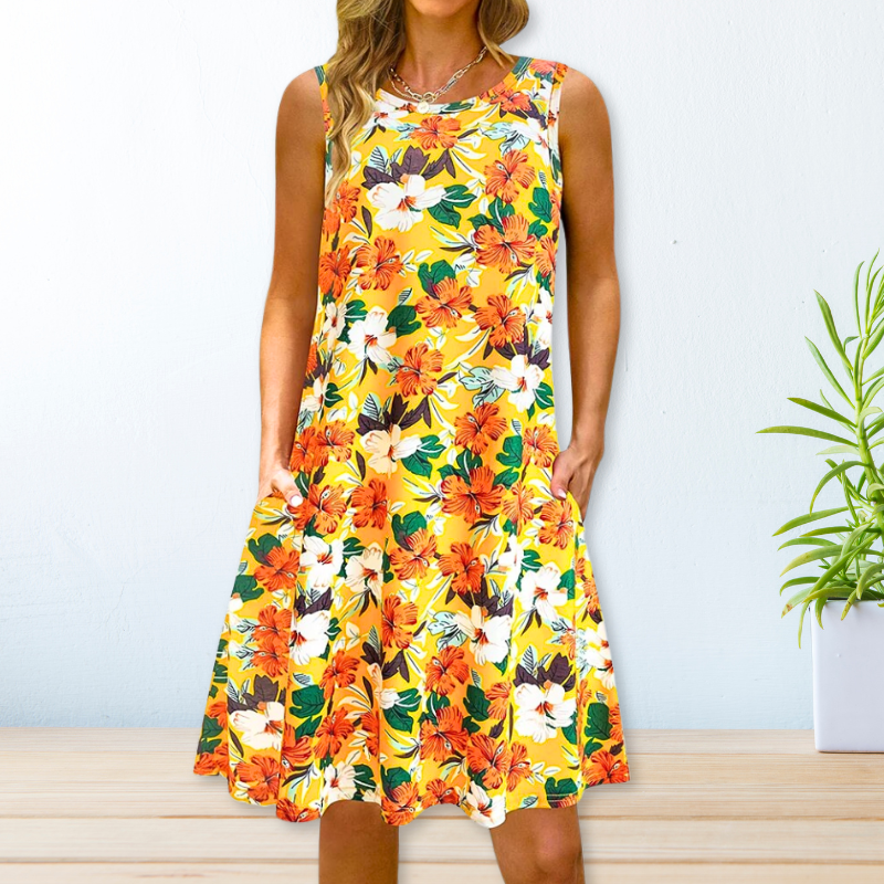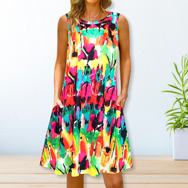 Lernen Sie unser lockeres Kleid kennen, eine lebendige und vielseitige Ergänzung für Ihre Sommergarderobe. Dieses ärmellose Kleid versprüht einen lässigen Bohème-Charme, der es perfekt für Strandausflüge, Reiseabenteuer oder sogar legere Partys macht. Mit seiner lockeren Passform und den auffälligen Prints bietet es sowohl Komfort als auch Stil für den ganzen Tag.