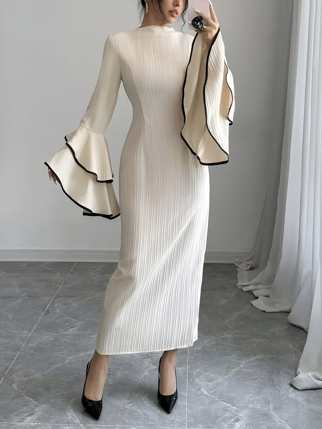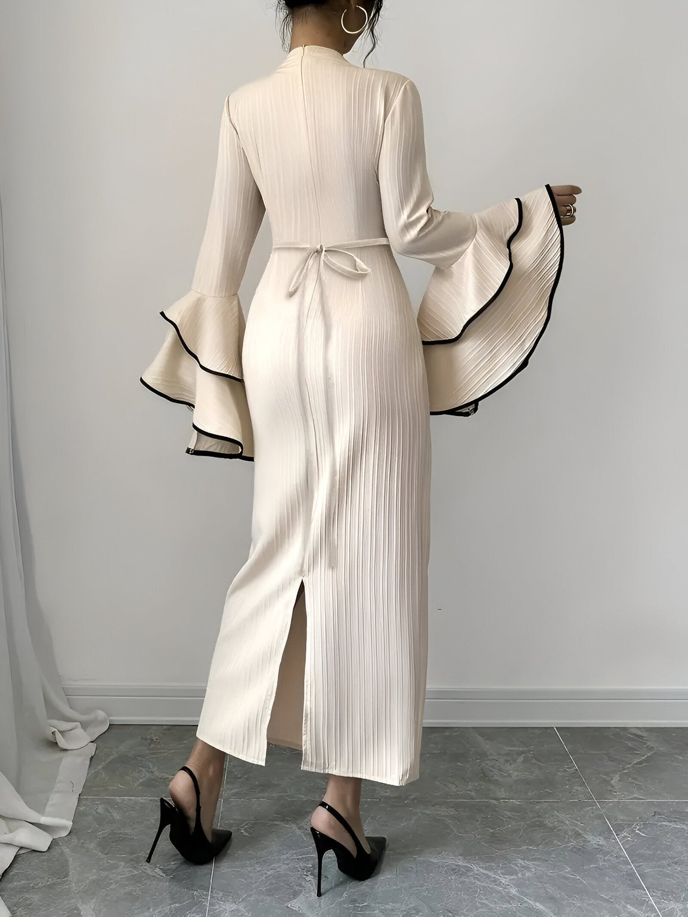 Mit den eleganten Glockenärmel und der zeitlosen einfarbigen Optik ist dieses Kleid vielseitig genug, um es sowohl für lässige als auch für gehobene Anlässe zu tragen – perfekt für jede Saison und jeden Anlass.