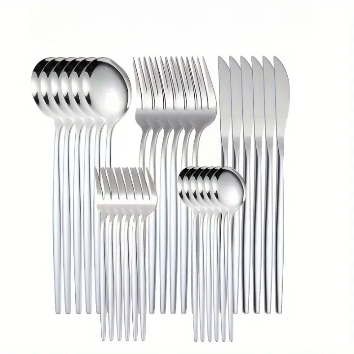 Vollständiges Set: Enthält 30 Teile mit Messern, Gabeln, Löffeln und Dessertlöffeln.