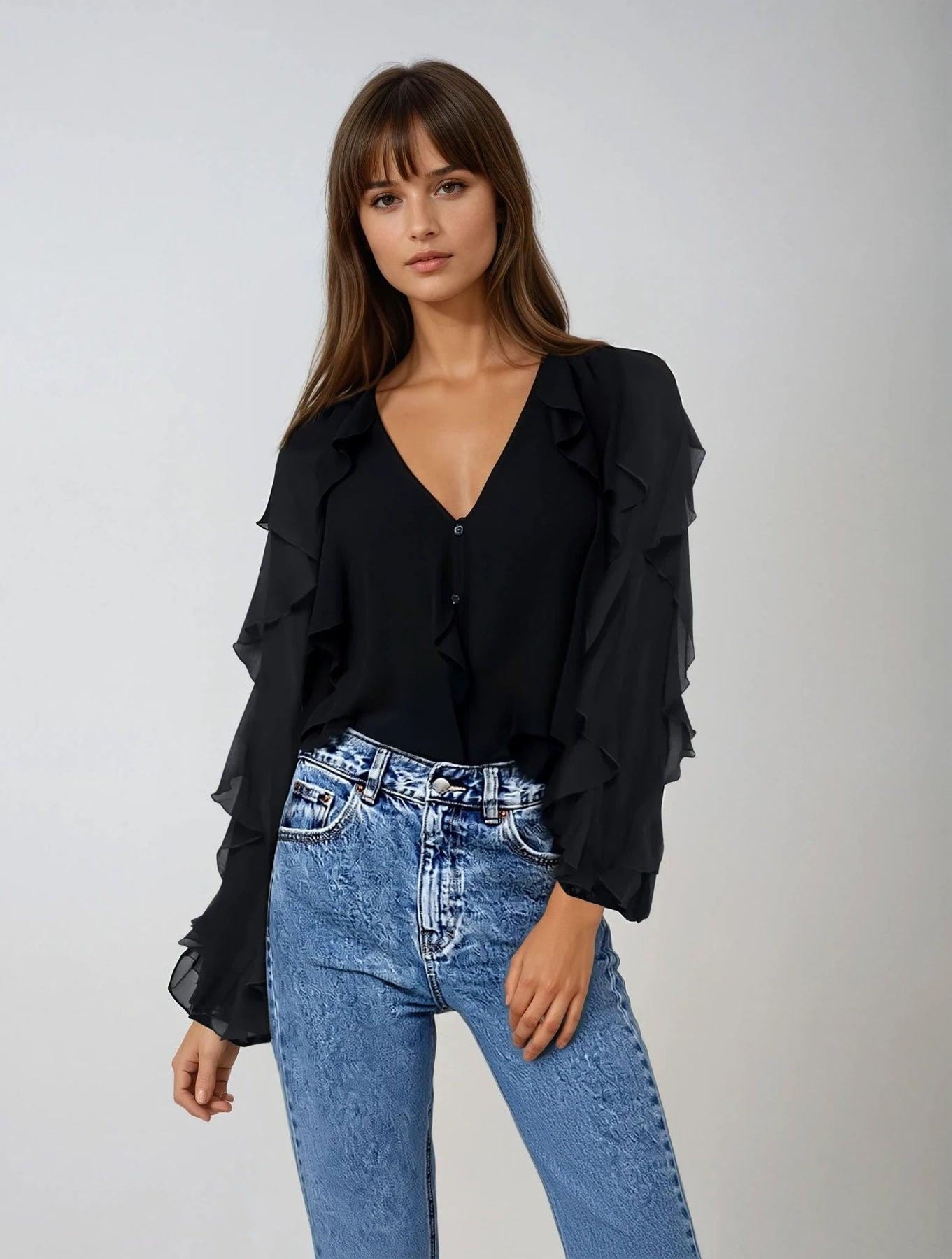 🔥 Mayfair™ | V-Ausschnitt Rüschenbluse – Mühelos Elegant ✨
