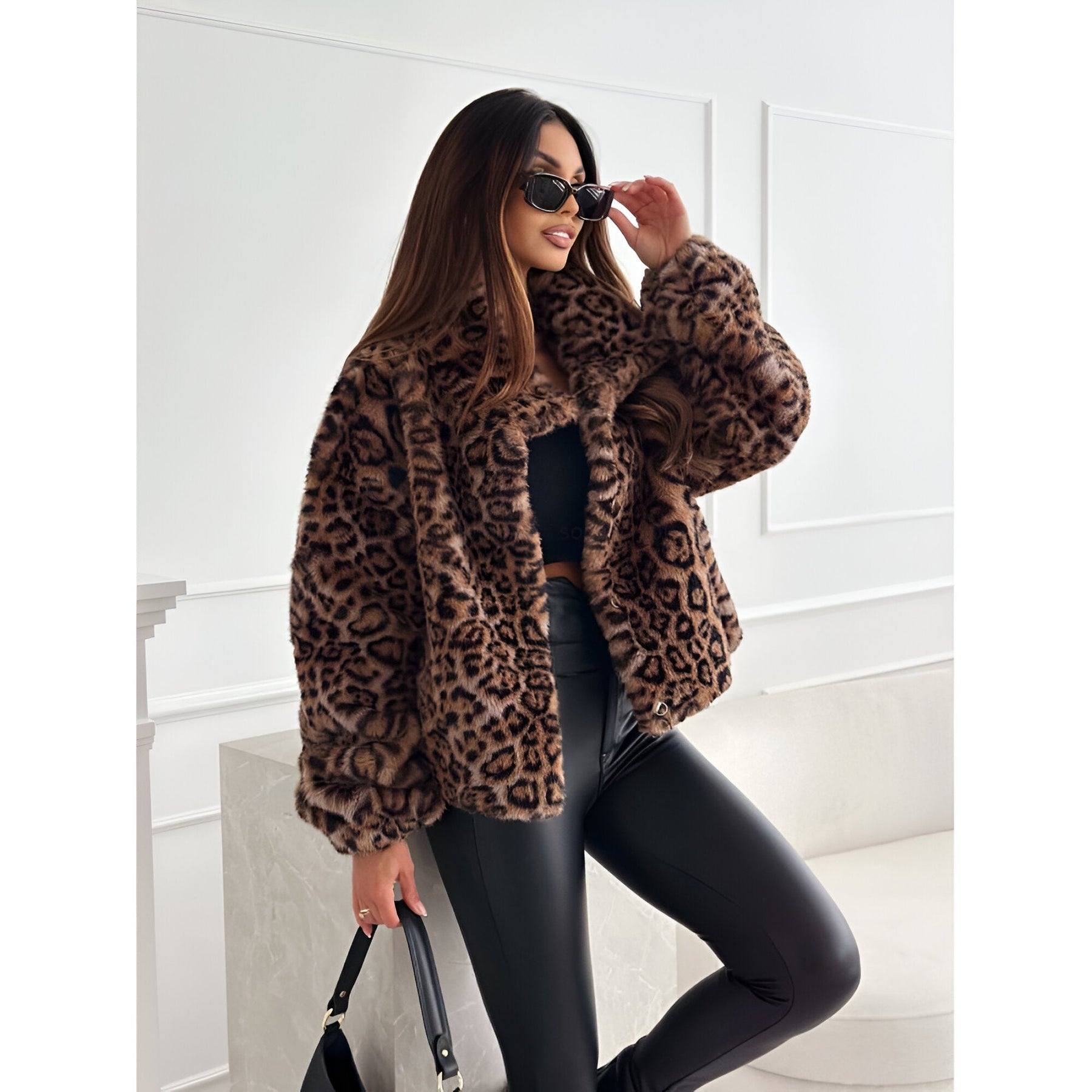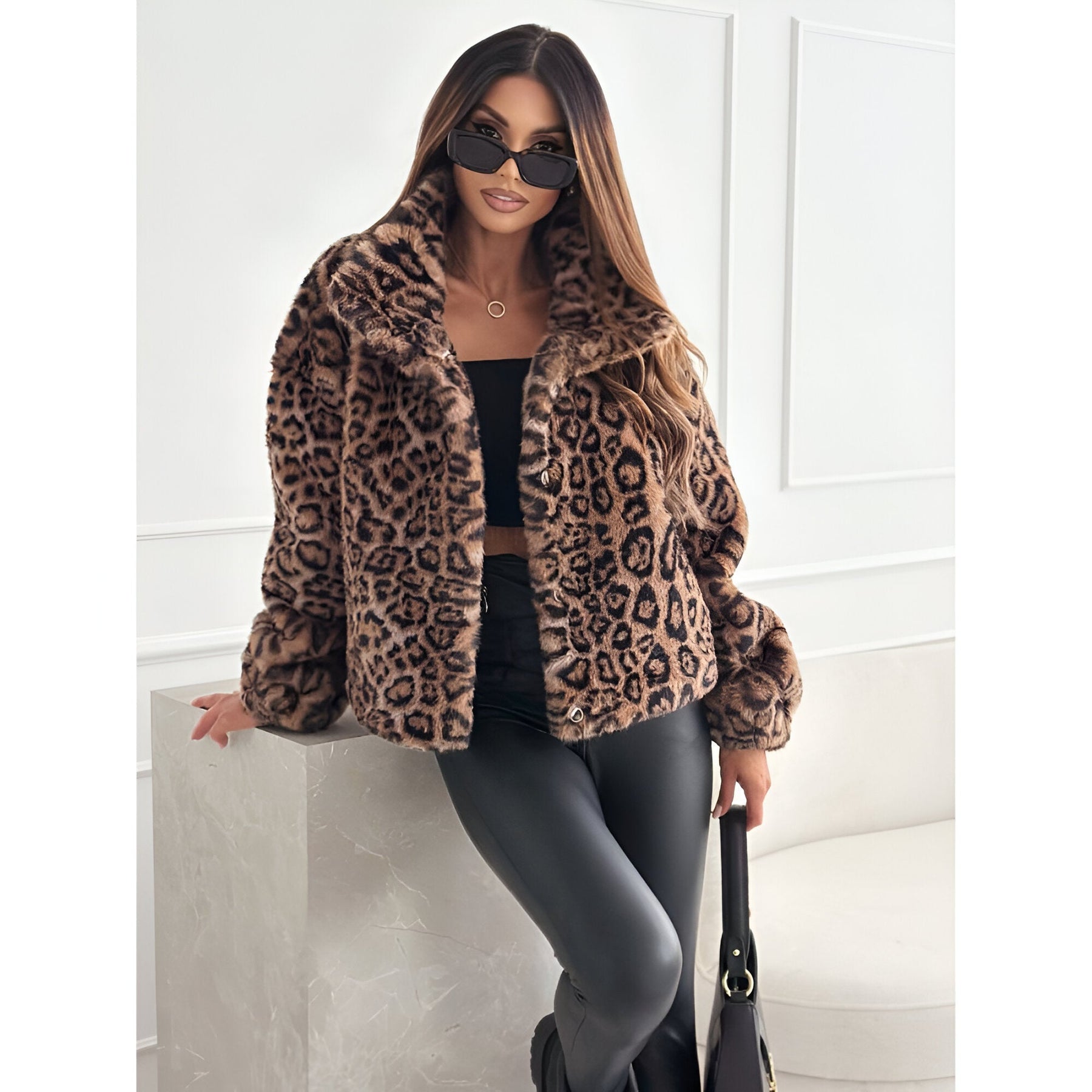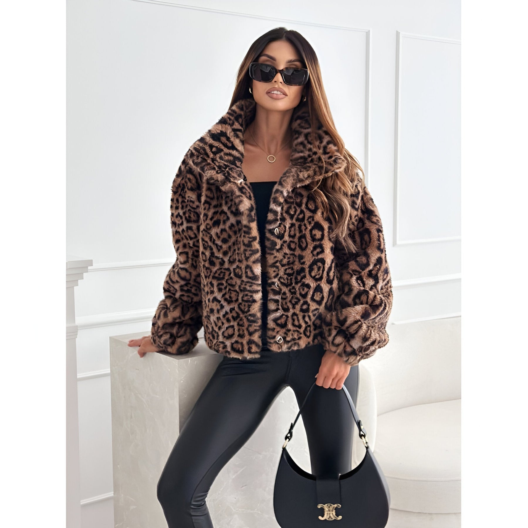 Das auffällige Leopardenmuster zieht sofort die Blicke auf sich, während der schlanke, kurze Schnitt ihn perfekt zum Schichten über jedes Outfit macht. Dieser Mantel kombiniert mühelos Kühnheit und Raffinesse und verleiht dir eine wilde Eleganz.