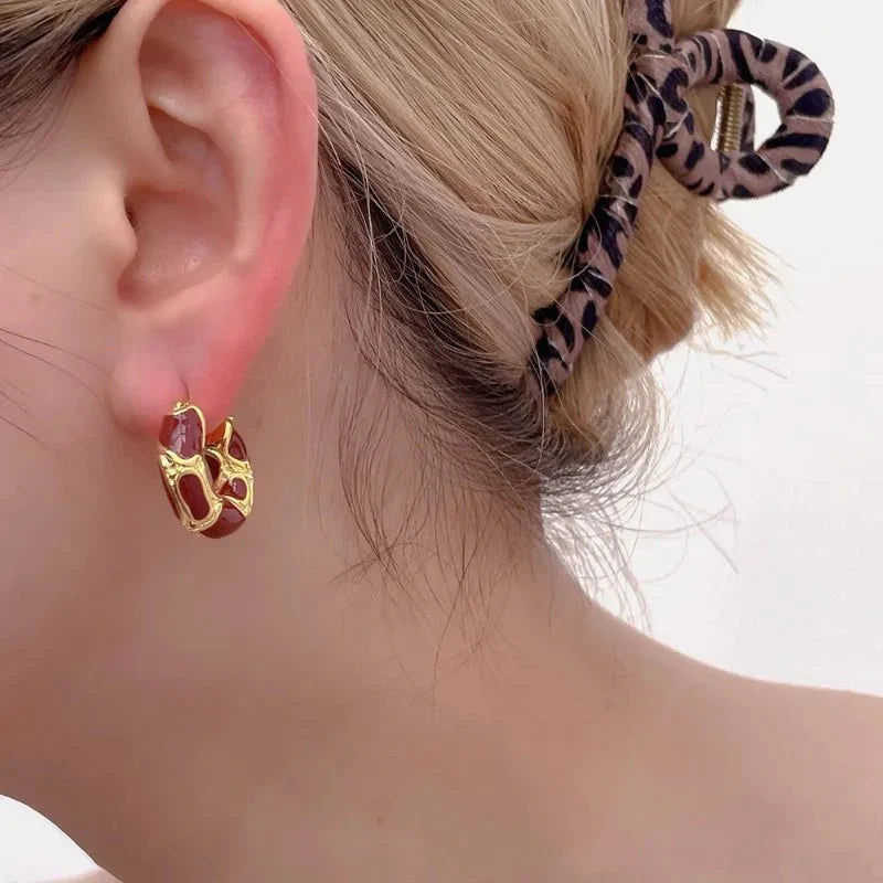 Hallo, Fashionista! 🤩 Bist du bereit, deinen Stil zu verbessern? Dann sind die Micara Golden Mosaic Creolen genau das Richtige für dich! ✨ Diese atemberaubenden Ohrringe sind eine perfekte Mischung aus kräftigen Farben und goldenen Akzenten und damit ein Muss für jeden Trendsetter. Erhältlich in klassischem Schwarz, strahlendem Weiß, zartem Rosa und leidenschaftlichem Rot, gibt es für jede Stimmung den passenden Farbton.