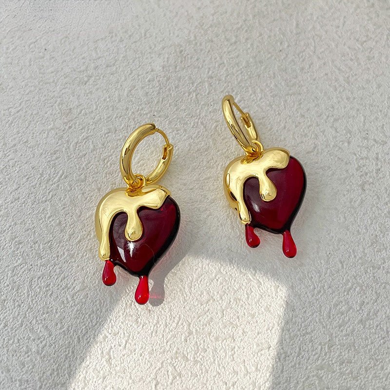 Hallo, Fashionista! 💖 Möchtest du deinem Outfit einen Hauch von edgy Glamour verleihen? Dann sind unsere Micara Heart Melts genau das Richtige für dich! Diese Ohrringe bestehen aus einem zarten goldenen Reif mit einem baumelnden roten Herz, das zu schmelzen scheint. Die tropfende rote Emaille verleiht einen Hauch von Geheimnis und Faszination und macht diese Ohrringe perfekt für jeden Anlass. Ein Must-have, um deinen Look mühelos aufzuwerten! ✨