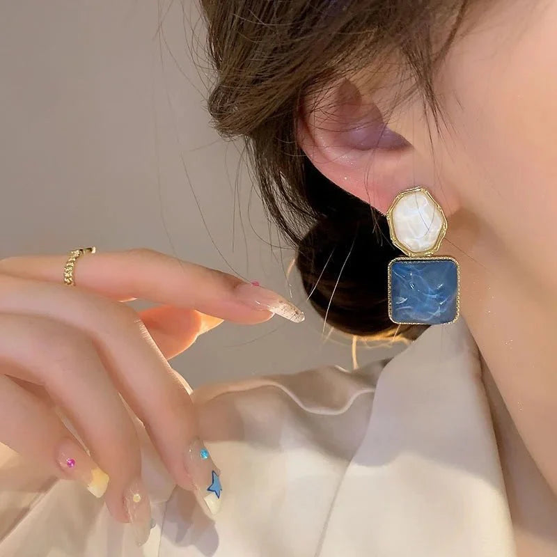 Hallo, Fashionista! 💃 Hast du genug von langweiligem Schmuck, der keine Aussage macht? Dann bist du hier genau richtig! Die Micara Ocean Frost Ohrringe sind da, um deinen Stil zu verbessern. 💎 Mit ihrer atemberaubenden geometrischen Form und der auffälligen Mischung aus Blau und Weiß sind diese Ohrringe ein Muss für jede Frau, die mühelos schick aussehen möchte. ✨