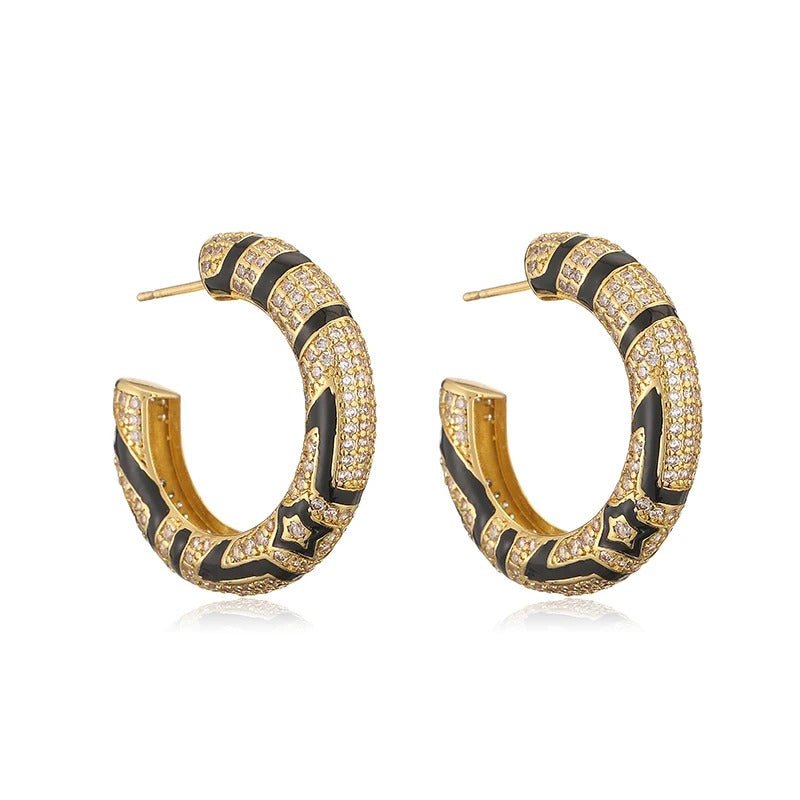 Hallo Schönheit! 👋 Bereit, ein wenig Glamour in deinen Alltagslook zu bringen? Unsere Micara Starry Stripes sind genau das Richtige für dich! Mit ihrem atemberaubenden Goldfinish und den auffälligen schwarzen Emaille-Akzenten vereinen diese Ohrringe mühelos Eleganz und Raffinesse. Denn jeder Tag ist eine Gelegenheit, um fabelhaft auszusehen und sich fabelhaft zu fühlen! 👑