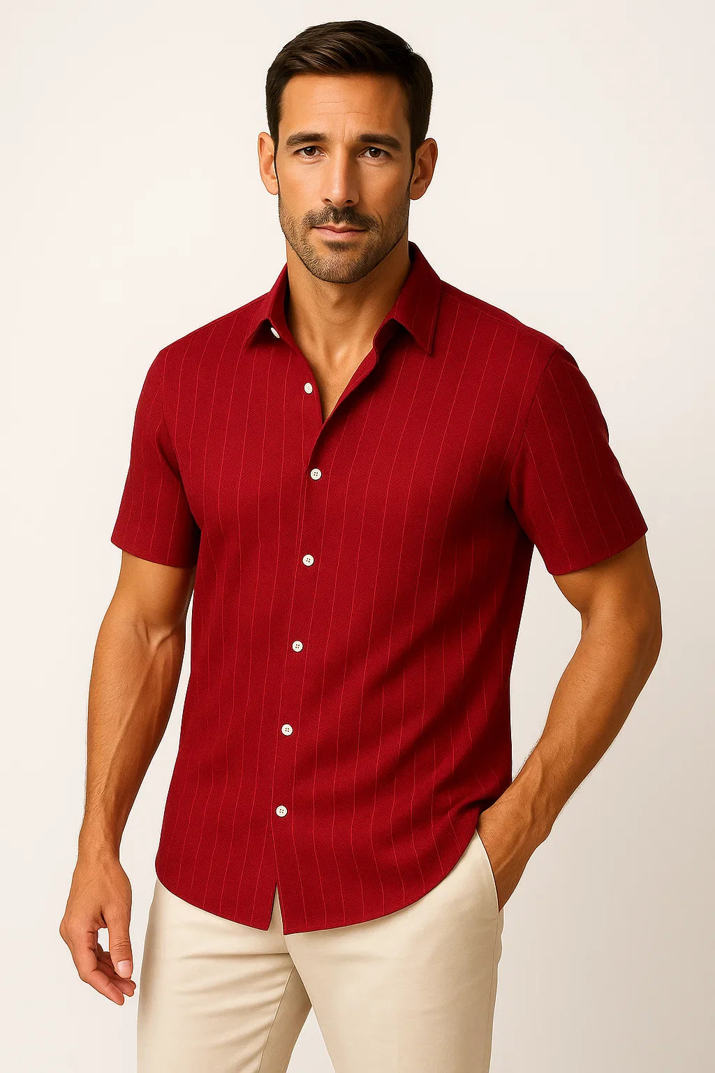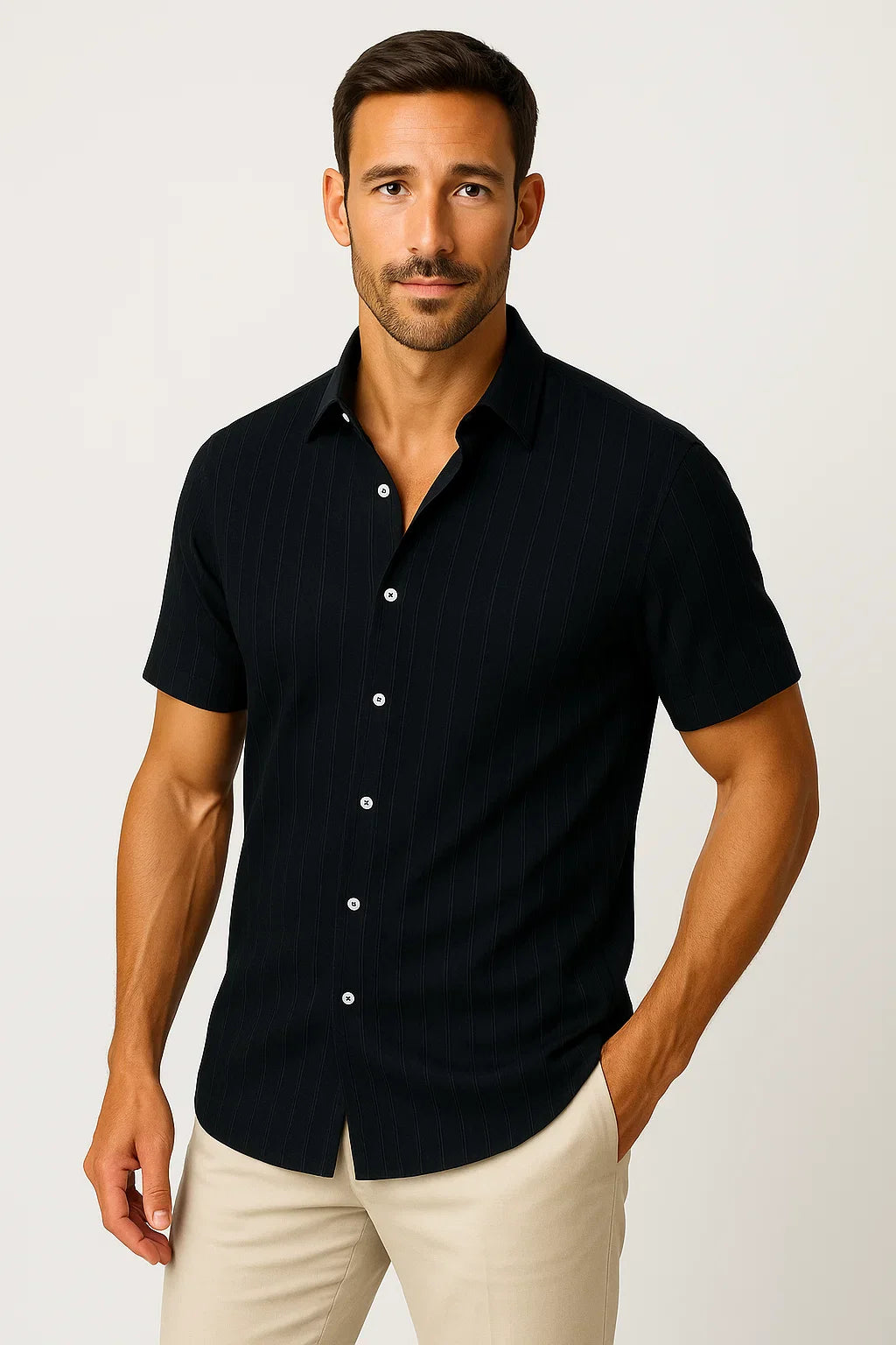 Setzen Sie auf stilvolle Lässigkeit mit einem Kurzarmhemd, das Komfort und Alltagstauglichkeit auf den Punkt bringt. Das moderne Design mit Knopfleiste und Reverskragen sorgt für eine zeitlose Ausstrahlung, die sowohl im Urlaub als auch im Alltag überzeugt. Dank atmungsaktiver Struktur und lockerer Passform bleiben Sie den ganzen Tag frisch und beweglich. i am in