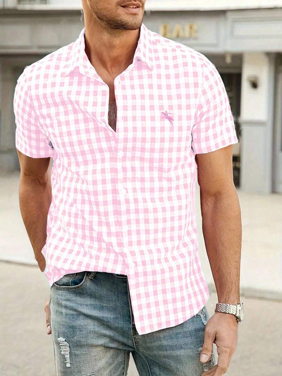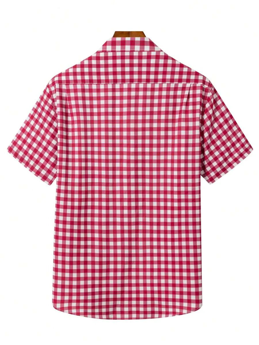 Oktoberfest Karohemd Herren – Kurzarm Trachtenhemd in Rot-Weiß