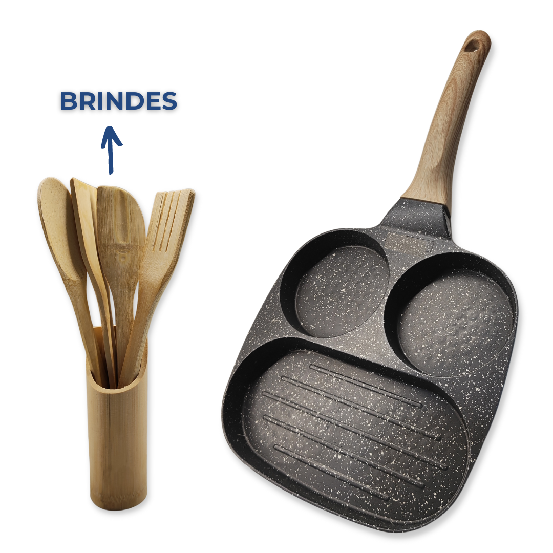 Erleben Sie die perfekte Kombination aus Komfort, Vielseitigkeit und gesundem Kochen mit der 3‑in‑1‑Bratpfanne. Mit drei separaten Kochflächen können Sie unterschiedliche Zutaten gleichzeitig zubereiten – ideal für Frühstück, Mittag- oder Abendessen. Dank der hochwertigen Antihaftbeschichtung benötigen Sie kaum Öl, und die Reinigung gelingt im Handumdrehen. Egal ob Eier, Speck, Gemüse oder Fleisch – diese Pfanne macht das Kochen schneller, einfacher und gesünder.