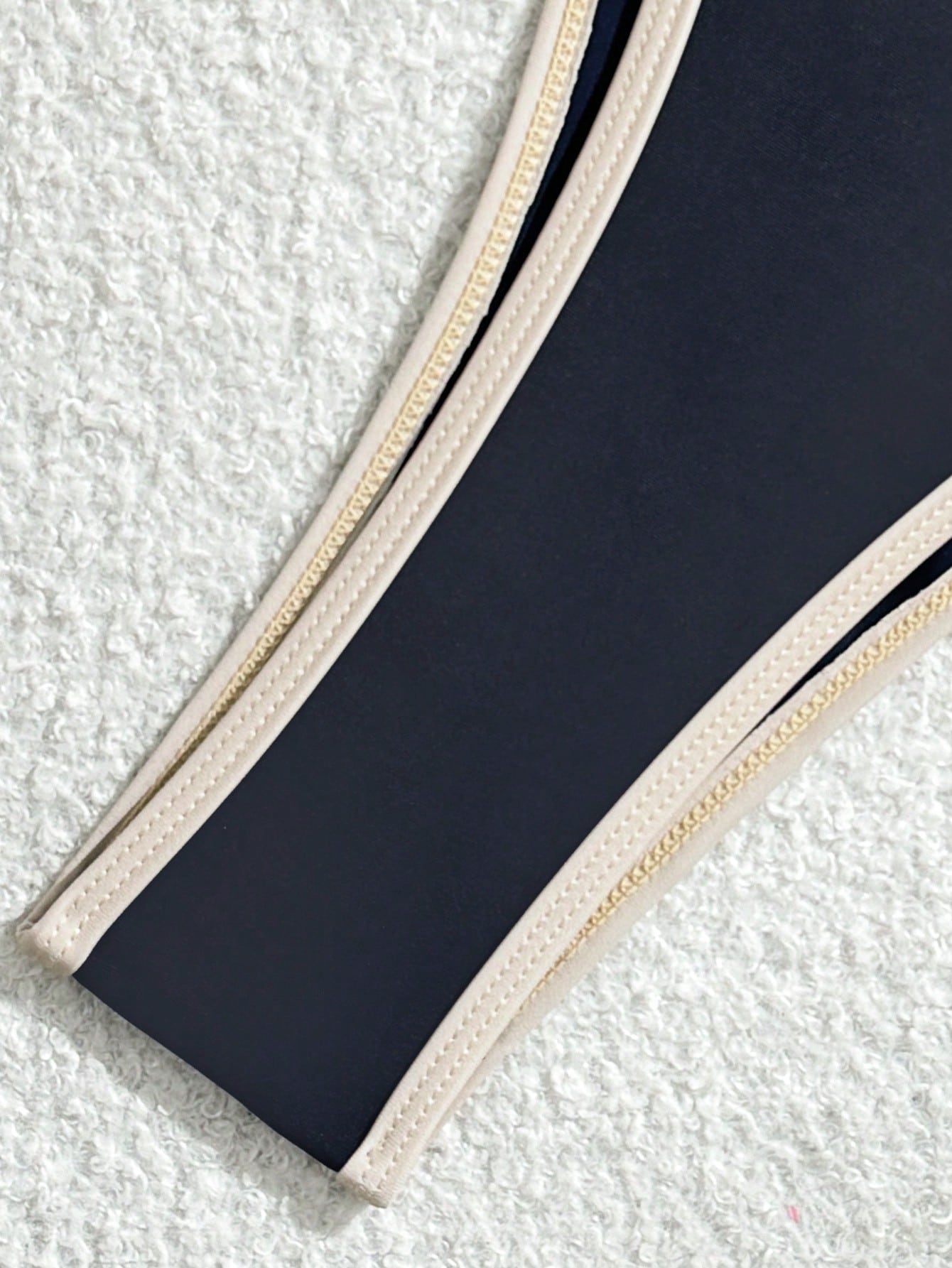 Sexy Triangel-Bikini in Marineblau mit Kontrast-Saum – Minimalistisches 2-teiliges Set zum Schnüren
