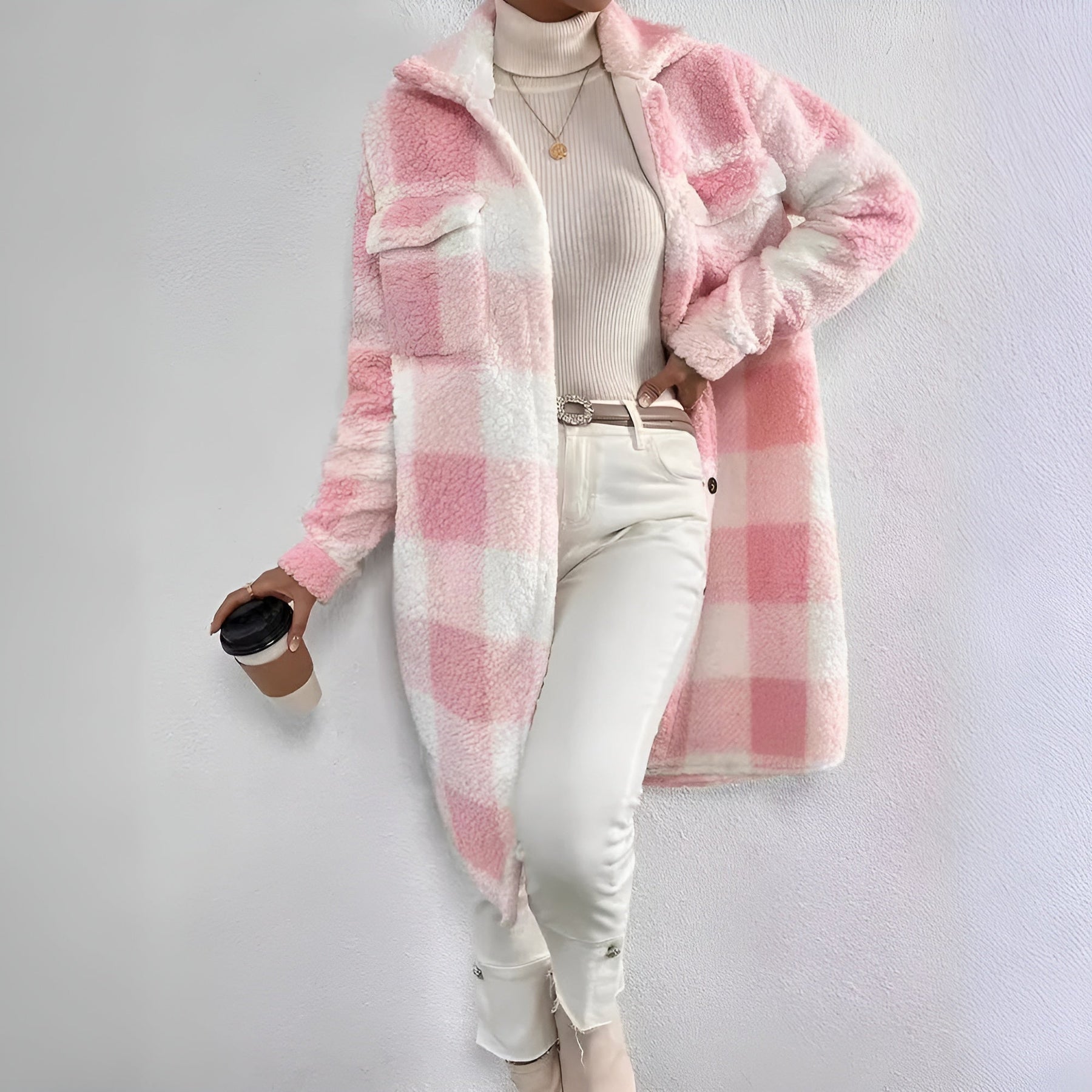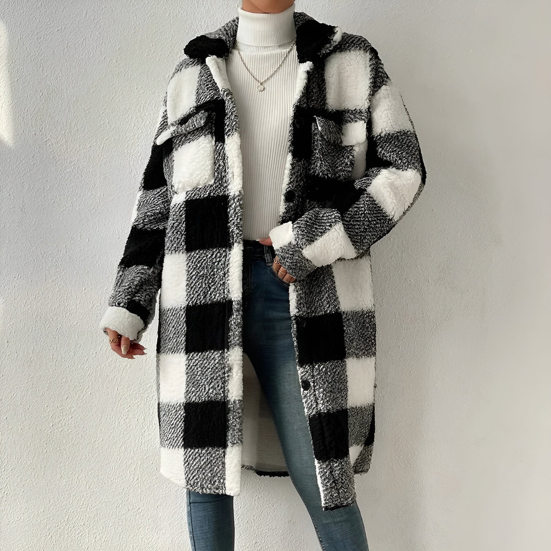 Sichtbarer Karo-Mantel für Damen