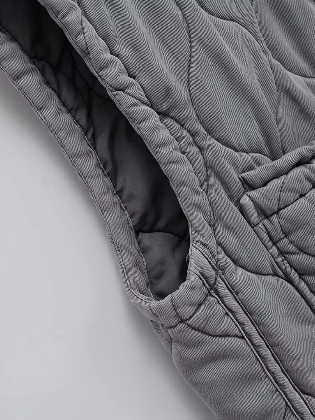 Diese Weste aus weicher, hochwertiger Baumwolle kombiniert Wärme mit einem modischen Look. Das ärmellose Design macht sie zu einem vielseitigen Teil, ideal für den Übergang zwischen den Jahreszeiten. Diese Weste verleiht jedem Outfit einen kuscheligen und zugleich eleganten Touch. Fügen Sie sie Ihrer Garderobe hinzu, um eine praktische und stilvolle Lösung für die kalte Jahreszeit zu finden.
