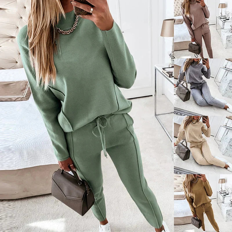 Dieser Trainingsanzug vereint lässigen Komfort mit modernen Details. Das Set besteht aus einem langärmligen Sweatshirt mit lockerem Kragen und einer passenden Jogginghose mit verstellbarem Kordelzug. Ideal für entspannte Tage oder lässige Freizeitlooks.