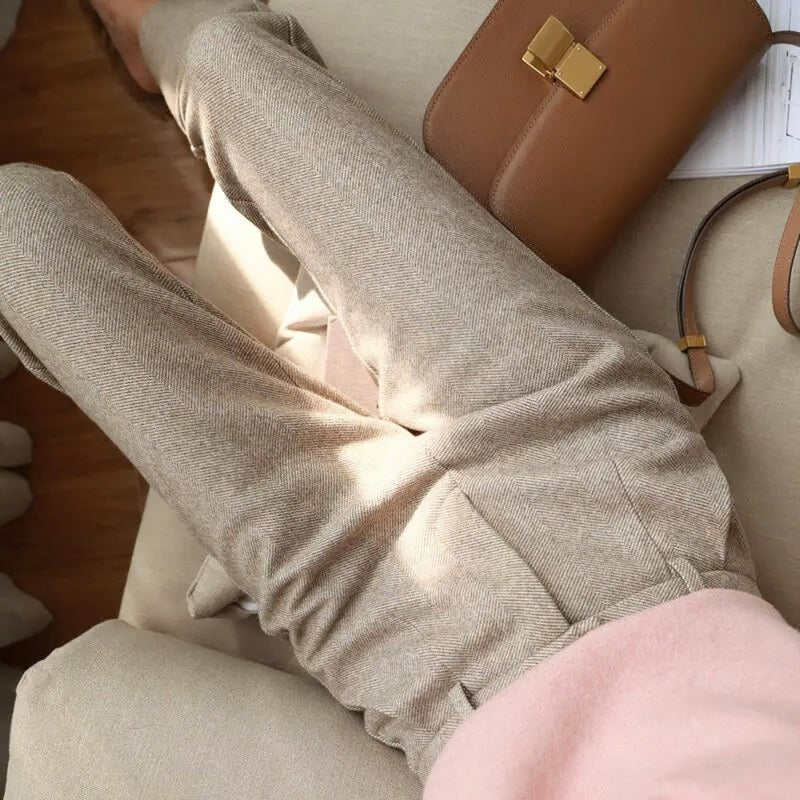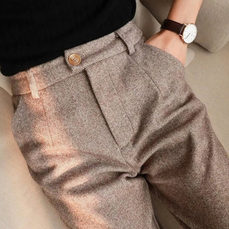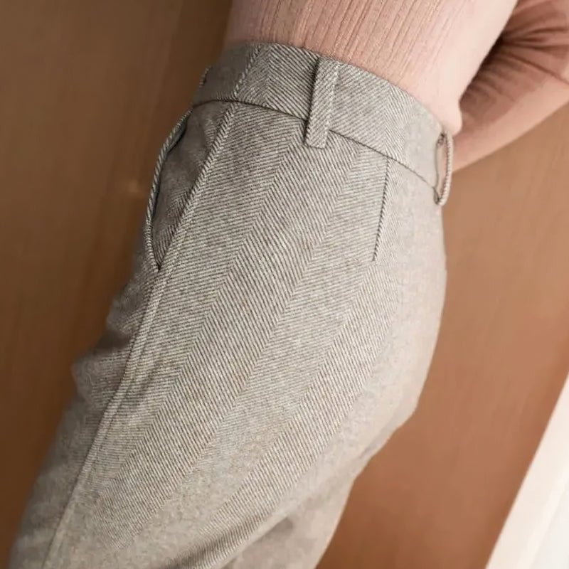 Die hohe Taille und die normale Passform bieten Komfort und kombinieren Eleganz mit Bewegungsfreiheit. Genießen Sie einen stilvollen Look, der Sie den ganzen Tag über begleitet.