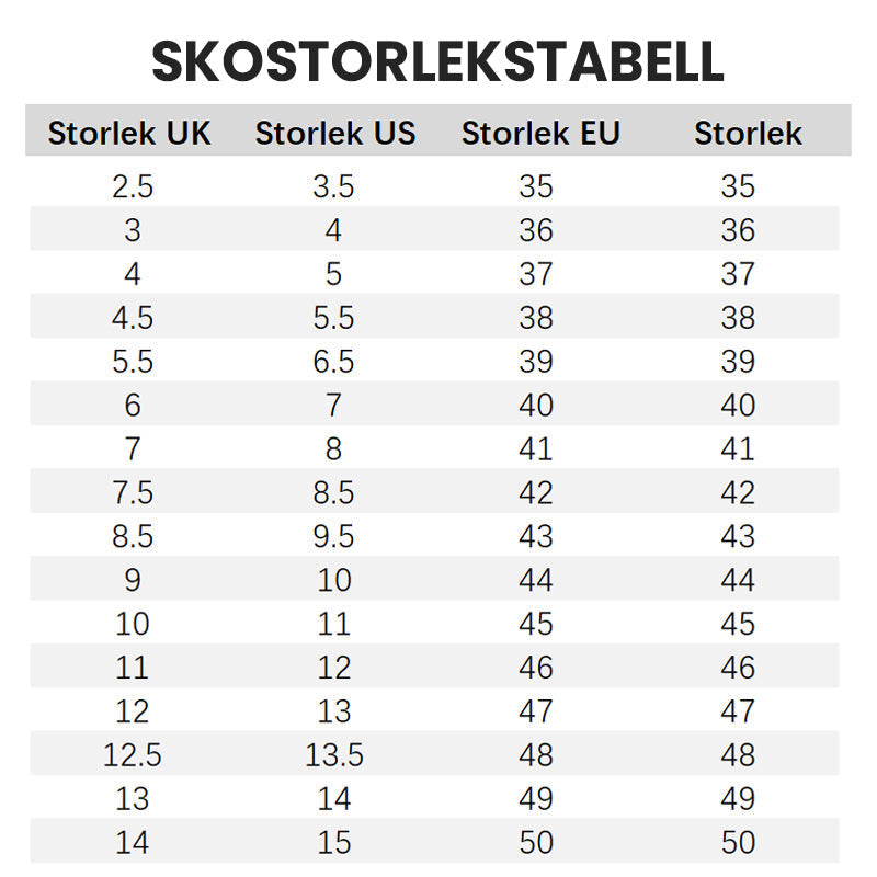 Größentabelle für Herrenschuhe